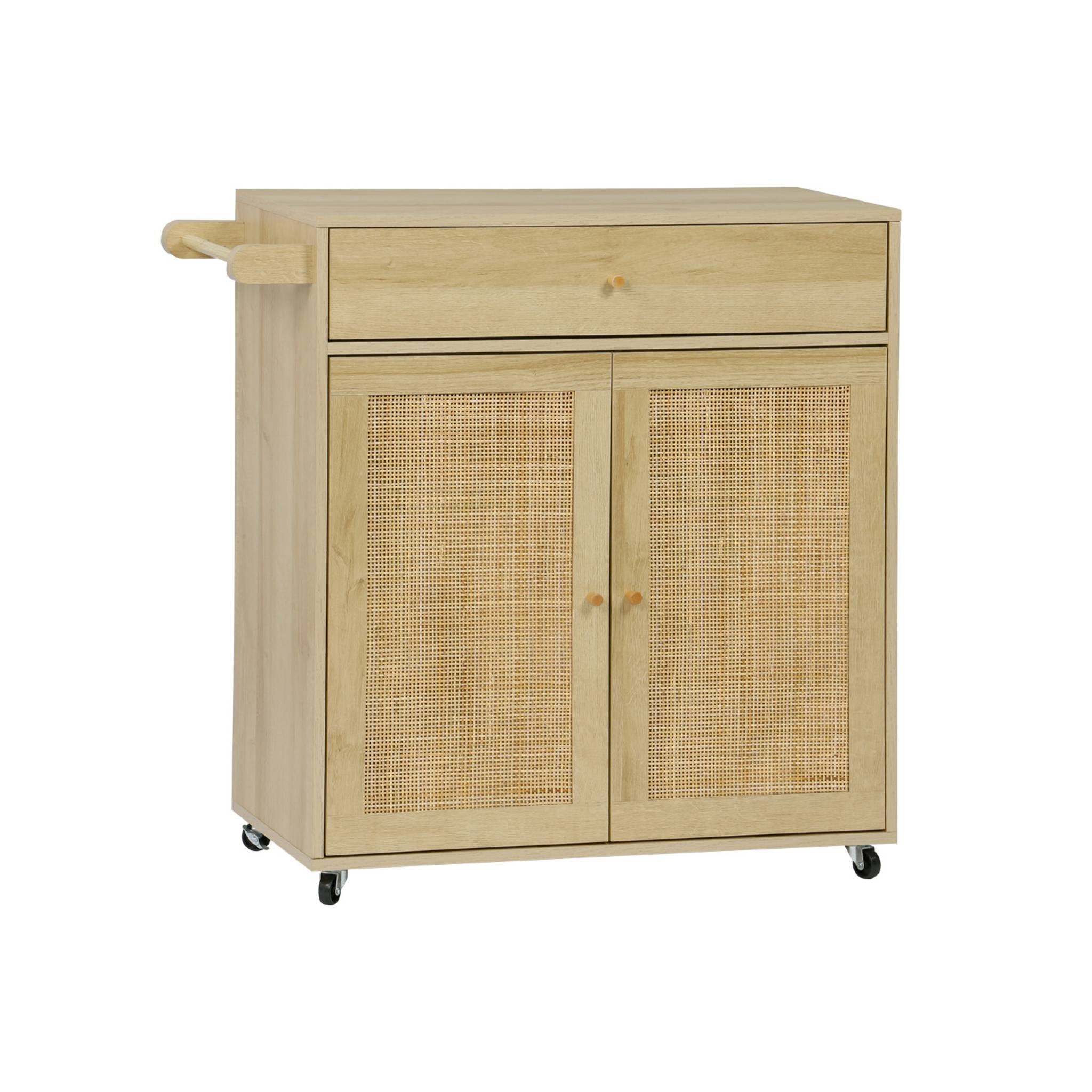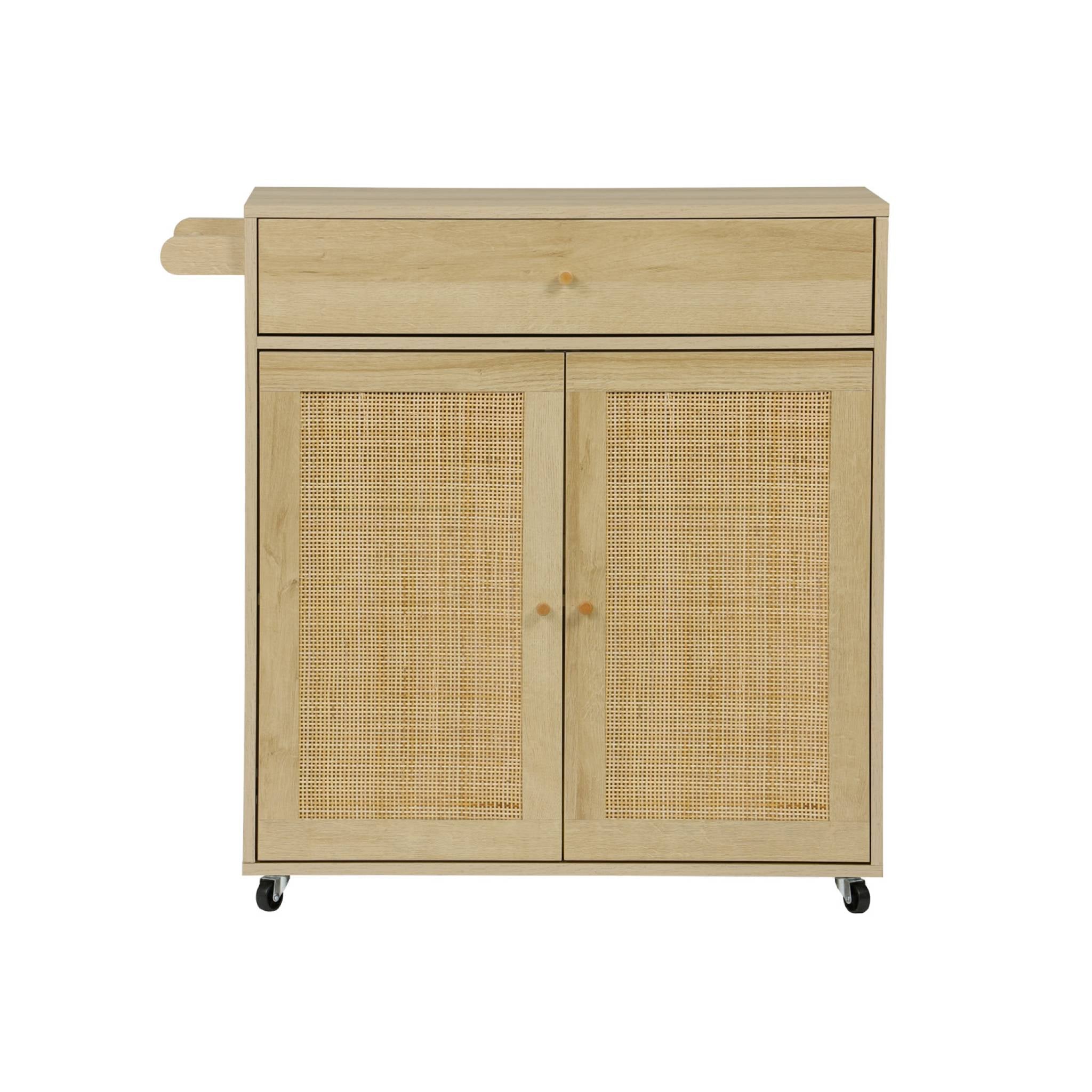 sweeek - Keukentrolley met houten decor en rotan, 1 handgreep, 1 lade,