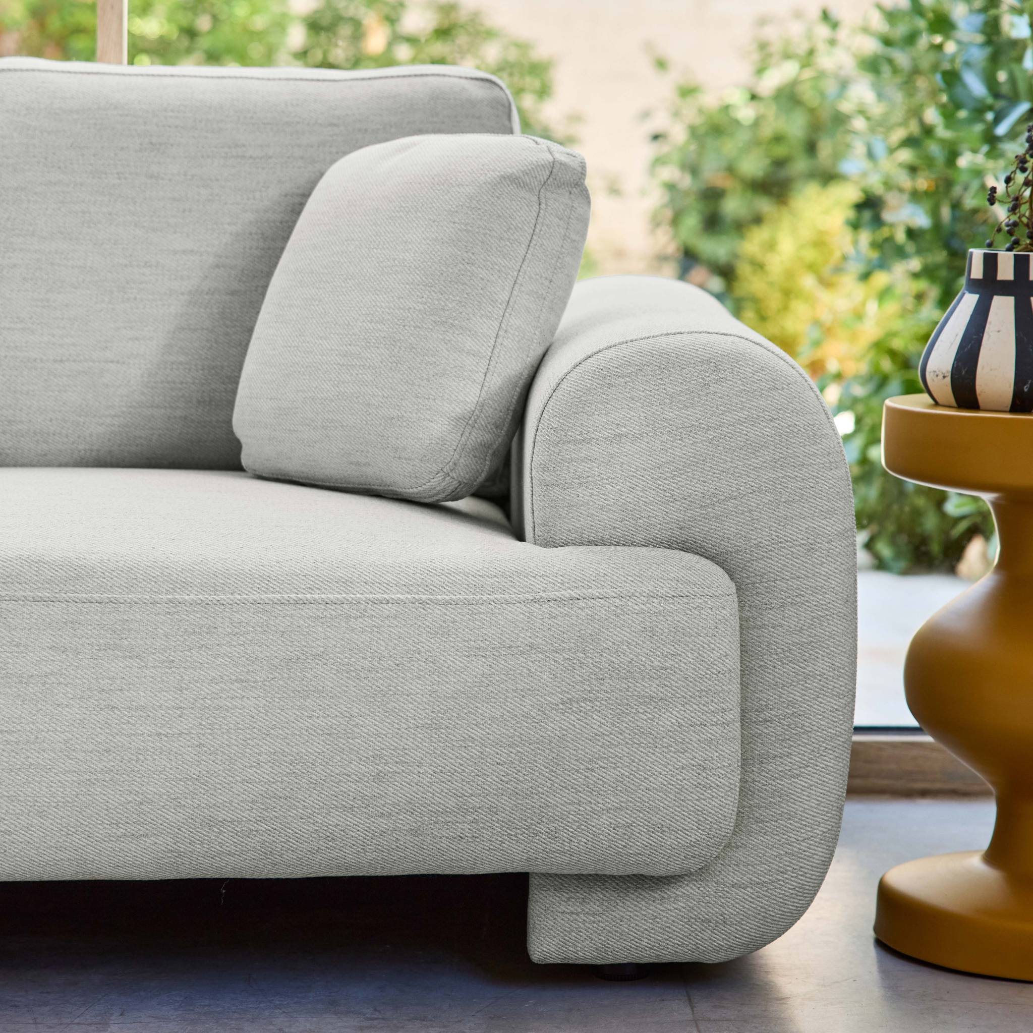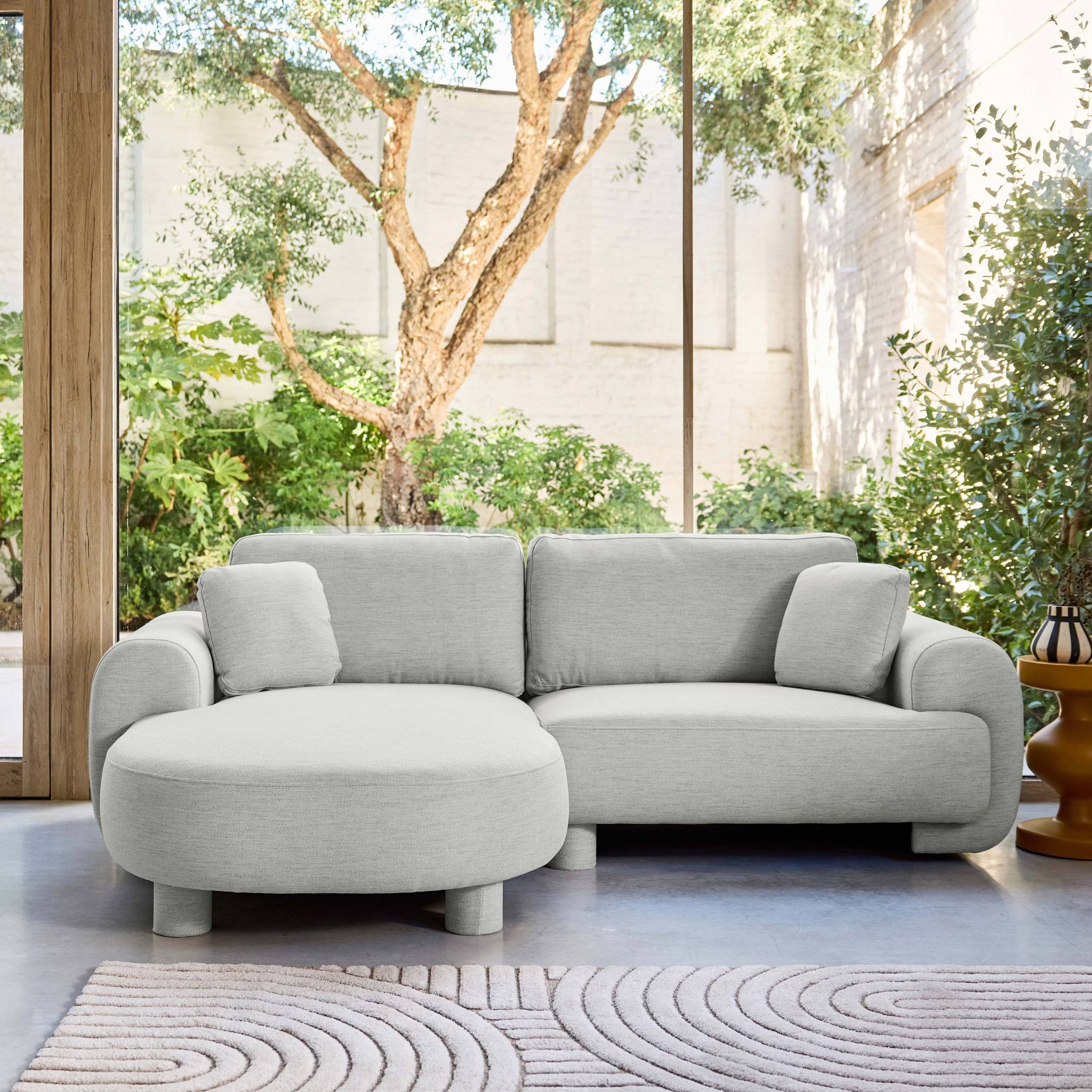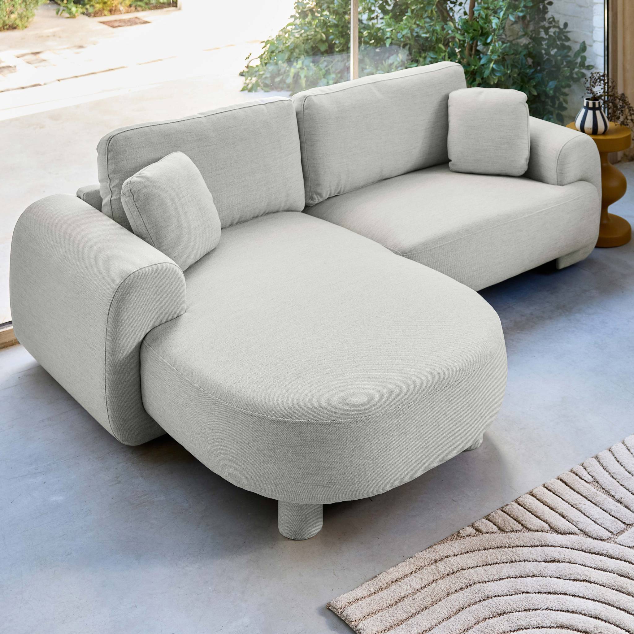 sweeek - Linkerhoekbank 3-zits stof, ronde poten