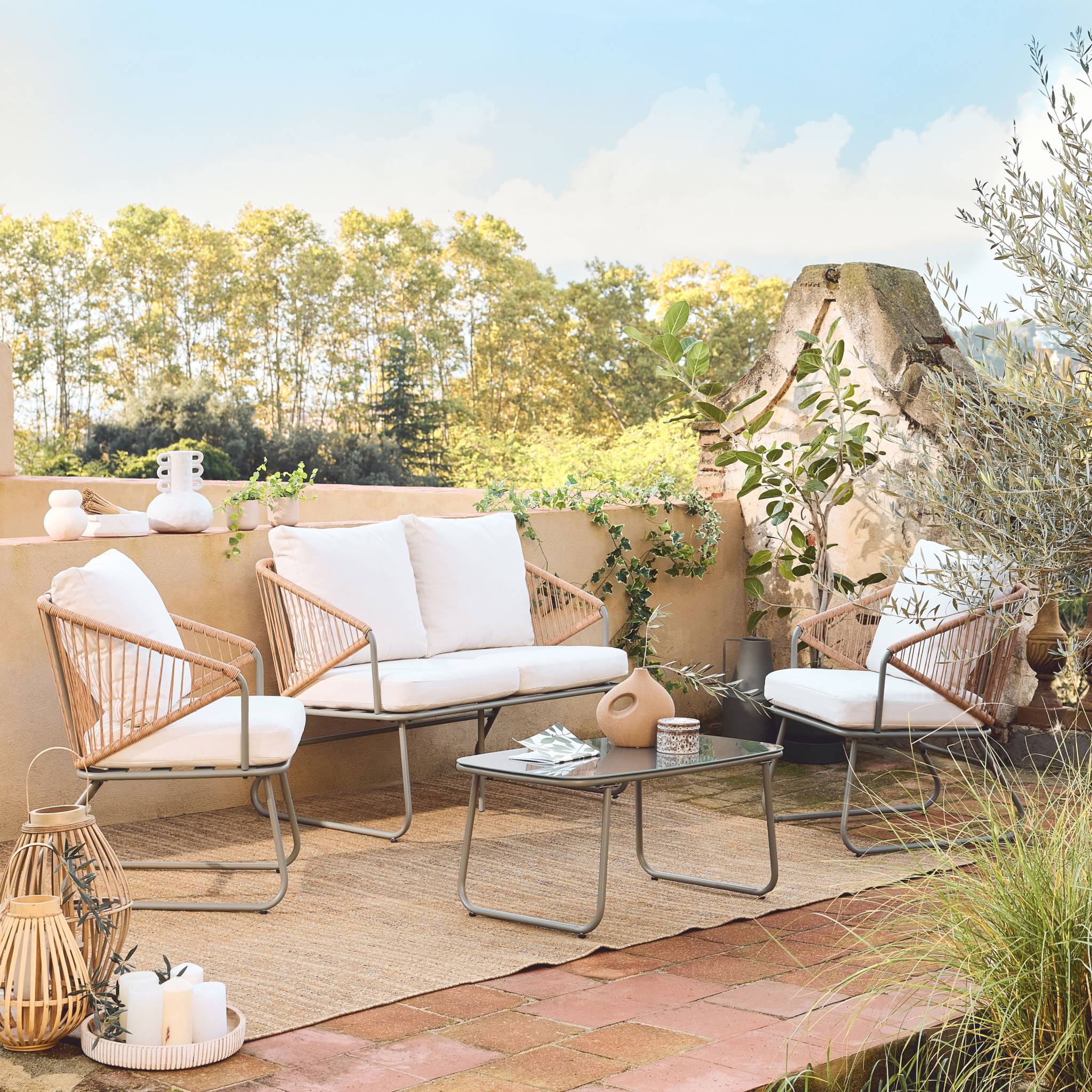 sweeek - Loungeset van metaal en natuurlijk hars, 4 zits