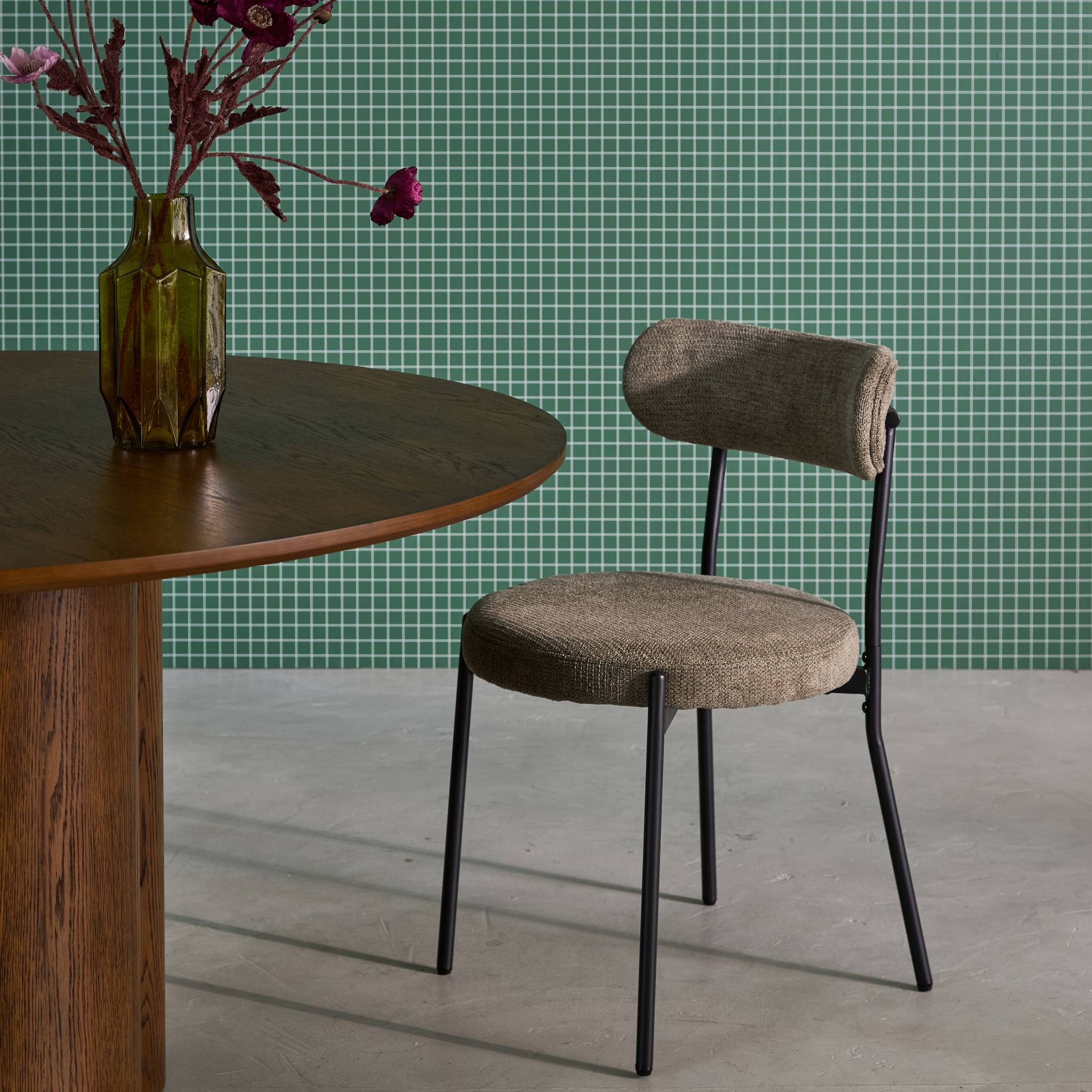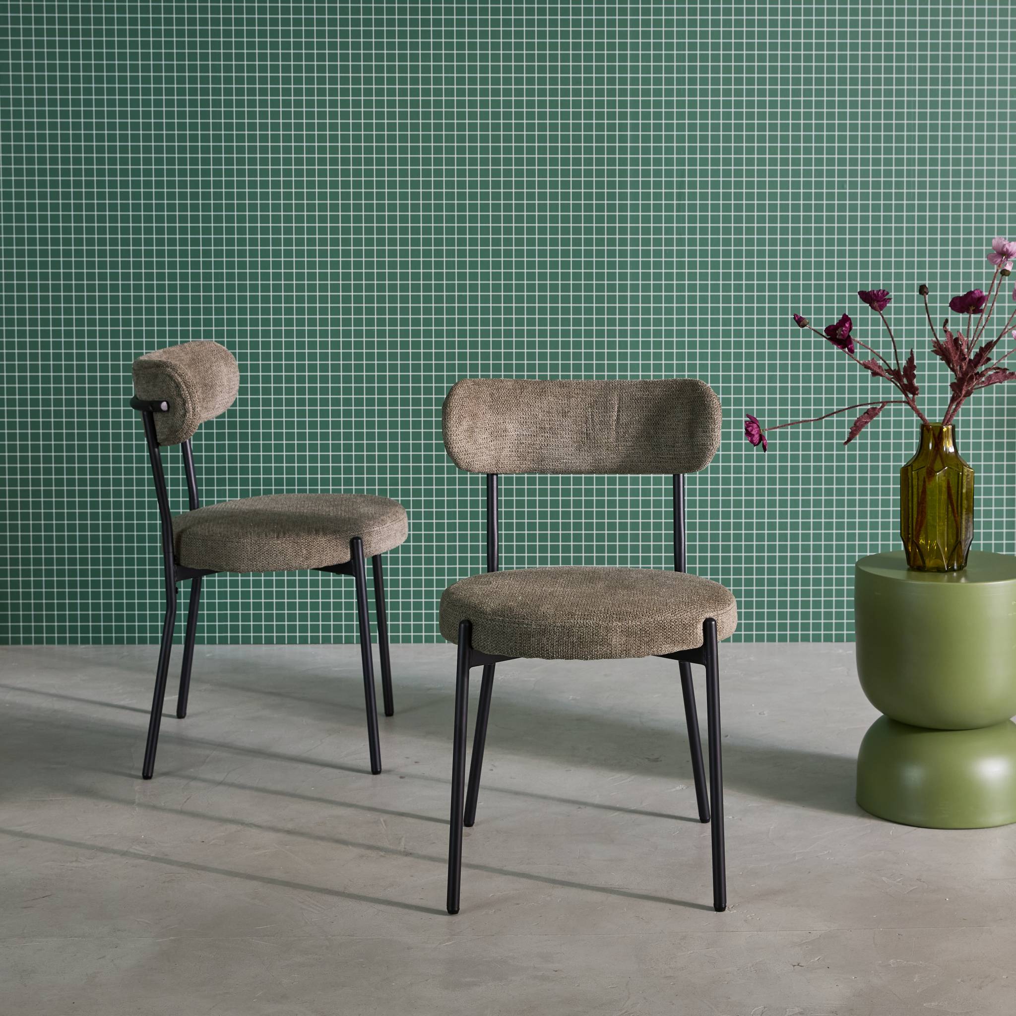 sweeek - Metaal en chenille stof stoel (set van 2)
