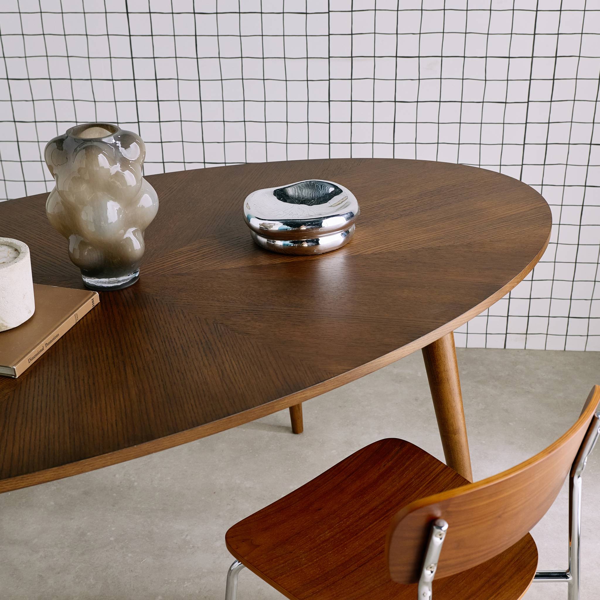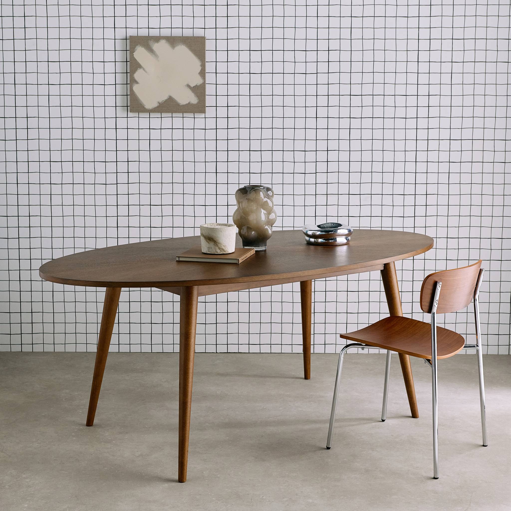 sweeek - Ovale eettafel van rubberhout en eikenfineer, 6 plaatsen