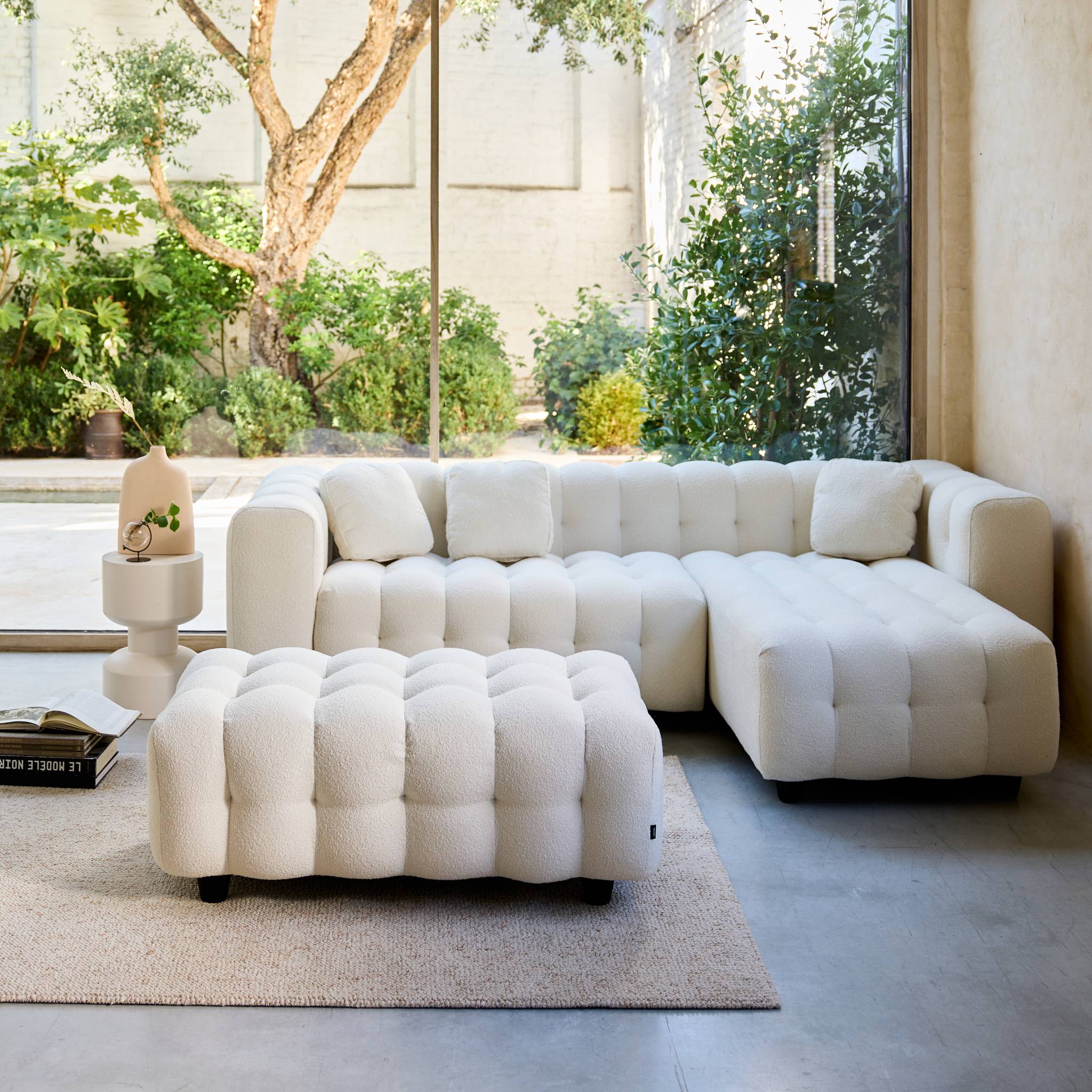 sweeek - Poef, bouclé voetenbankje voor 3-zits hoekbank Leon