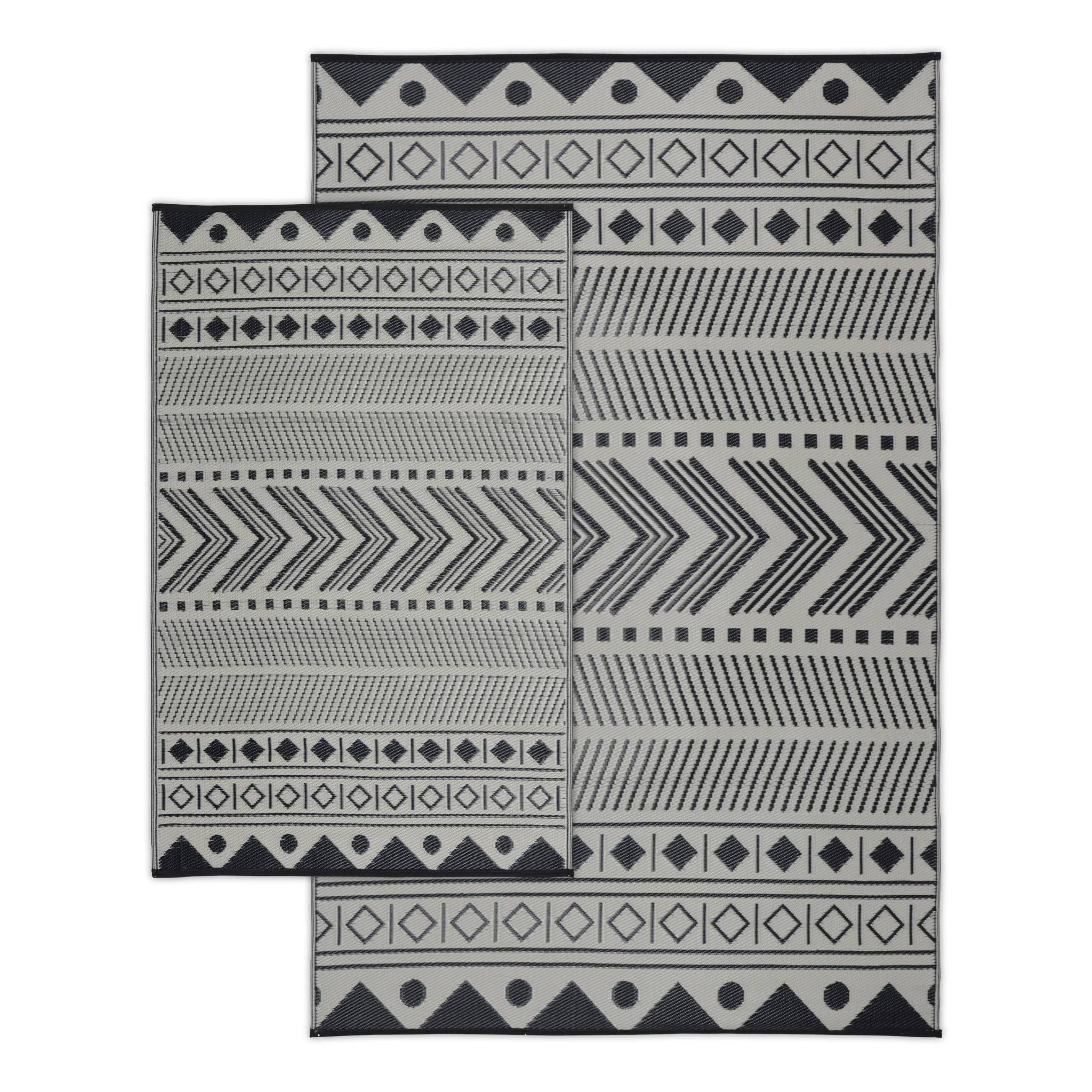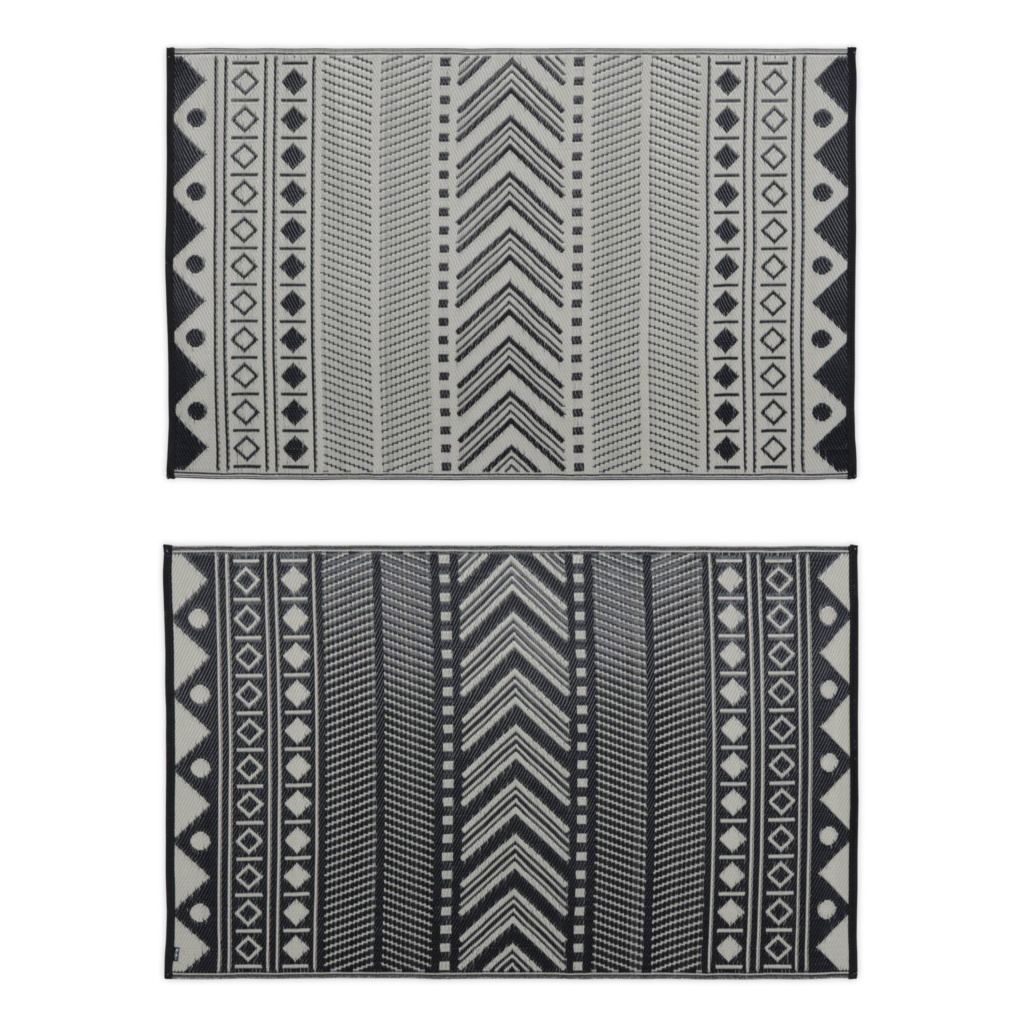sweeek - Rechthoekig buitentapijt, etnisch patroon, zwart|beige