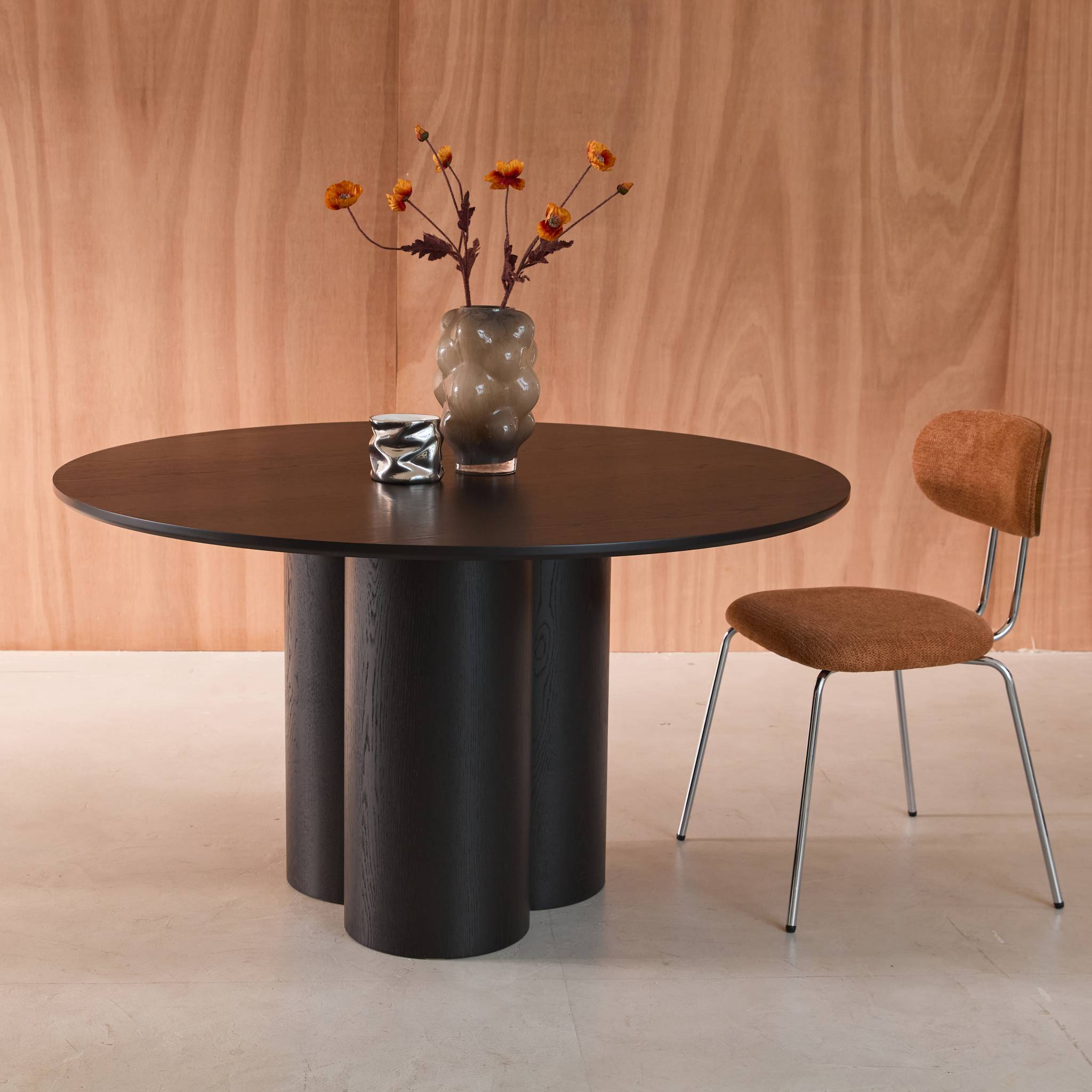 sweeek - Ronde eettafel van rubberhout en eikenfineer voor 4 personen