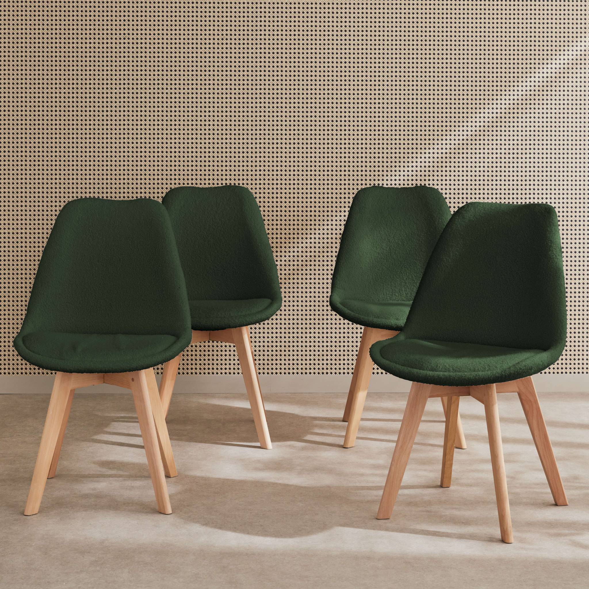 sweeek - Scandinavische boucléstoel met houten poten (set van 4)