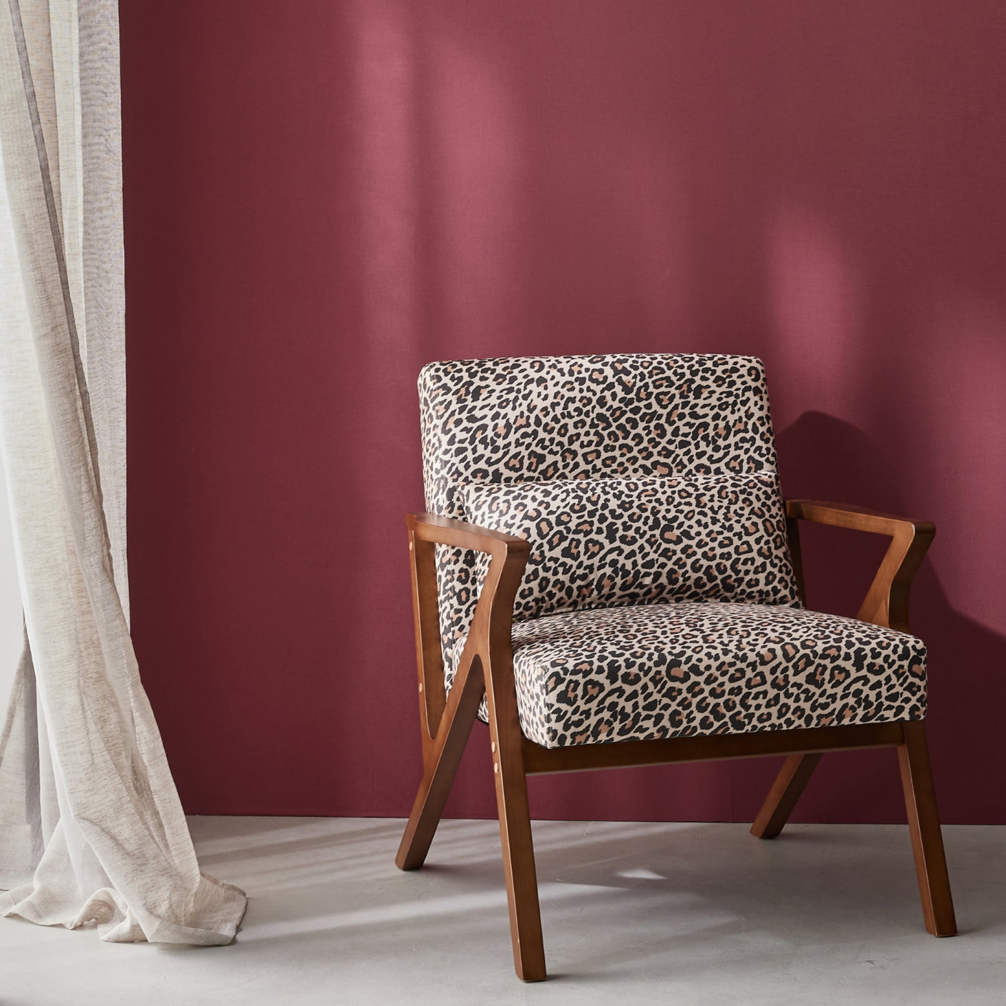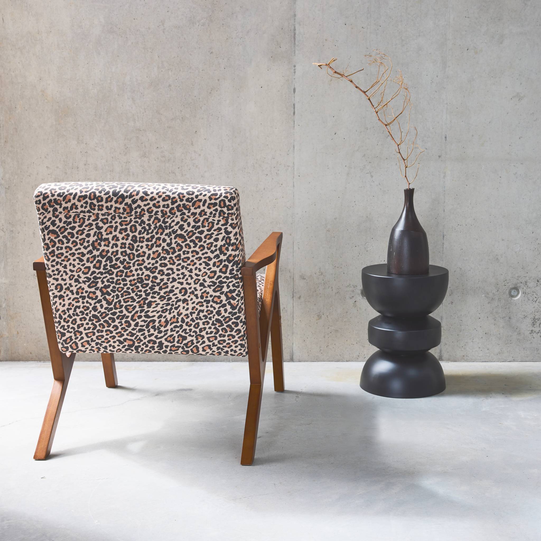sweeek - Scandinavische fauteuil in heveahout en luipaardprint