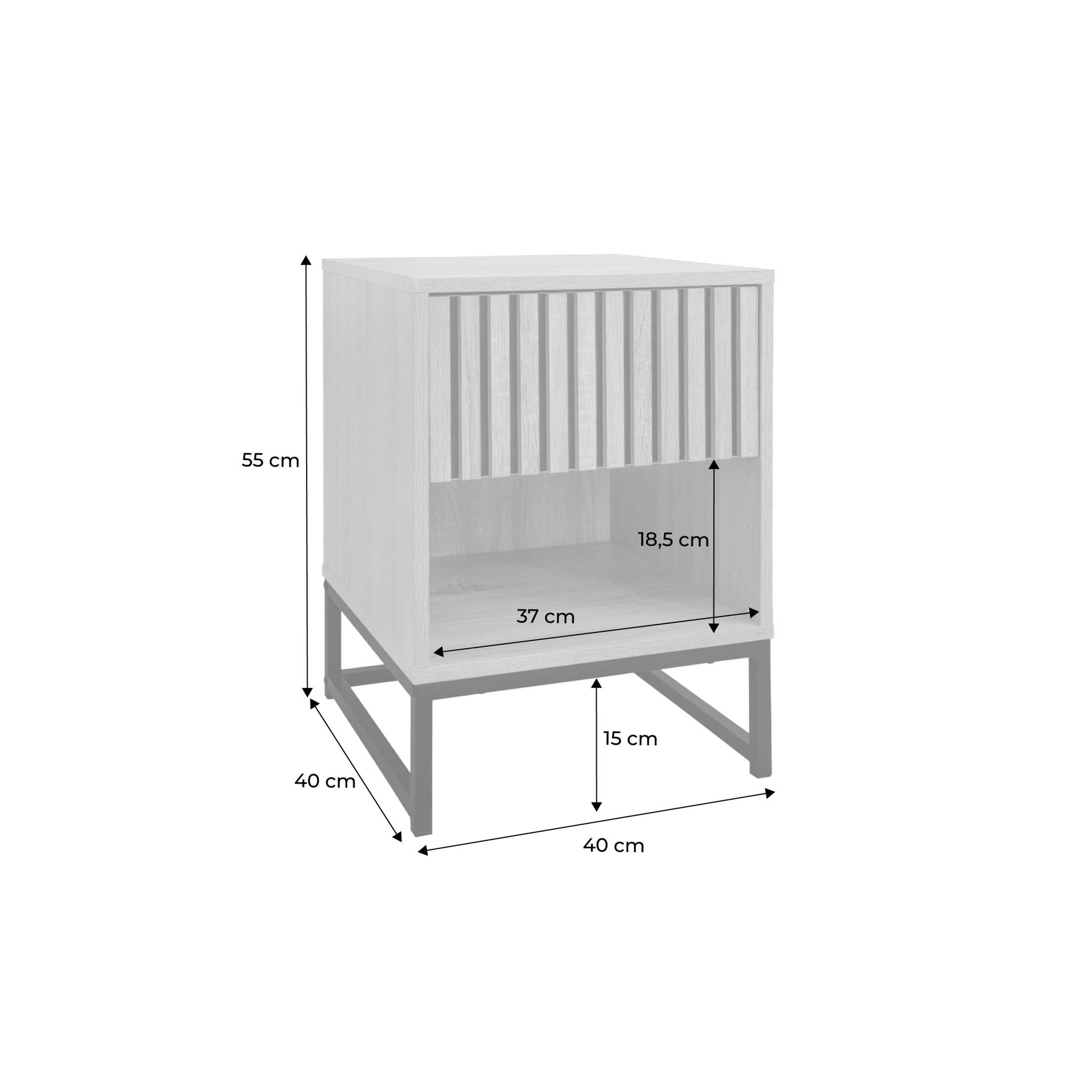 - 1 lade (systeem om te openen) en 1 opbergvak