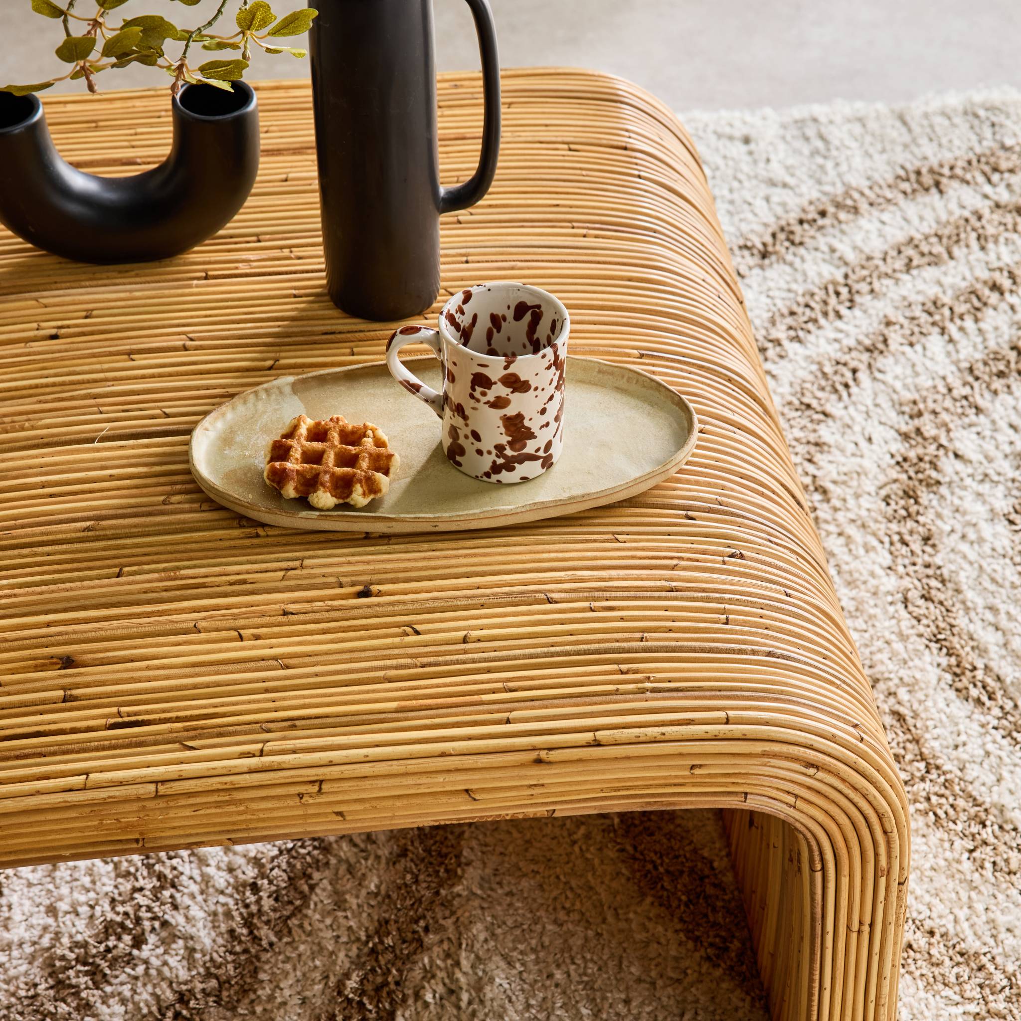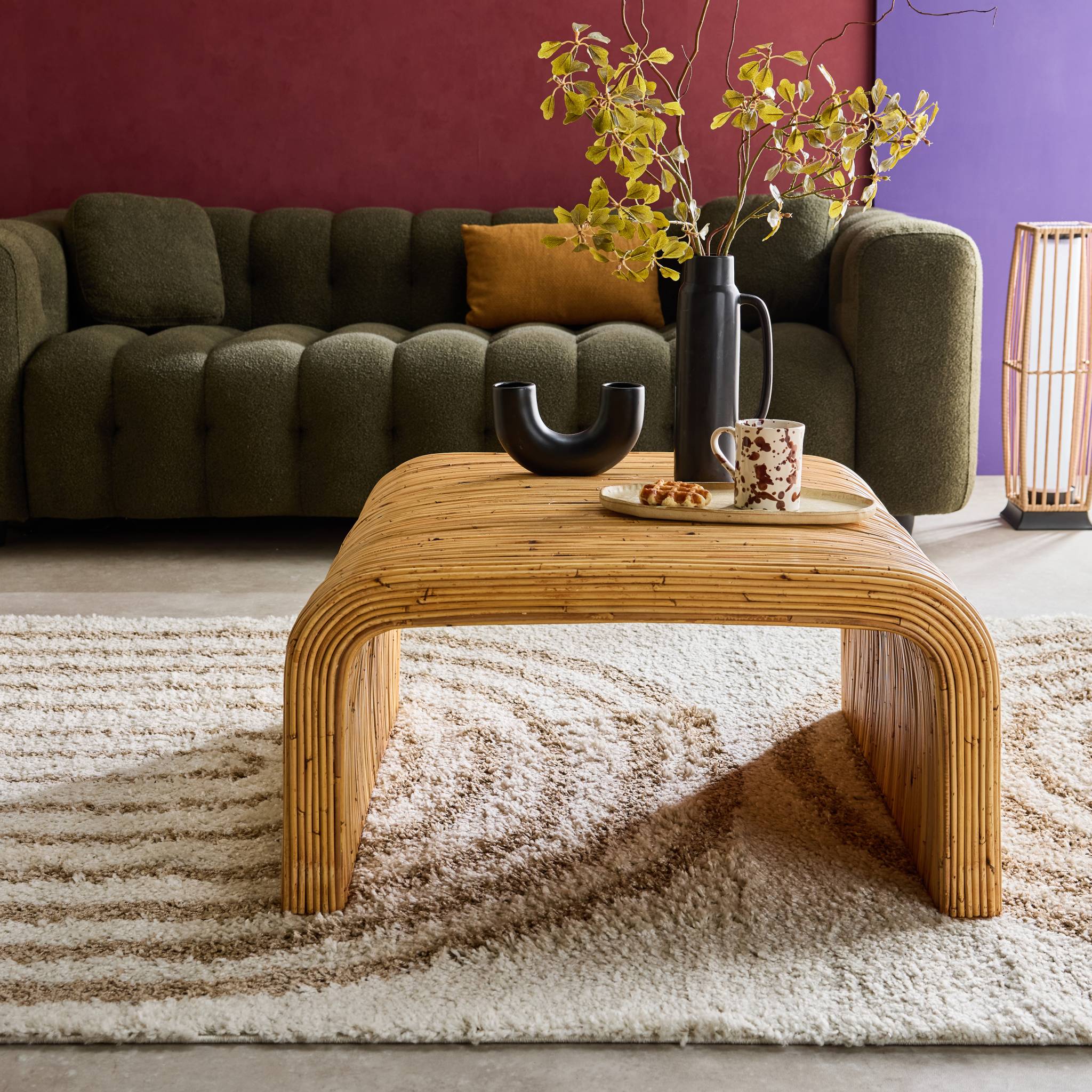 sweeek - Vierkante salontafel in natuurlijk rotan, 80cm