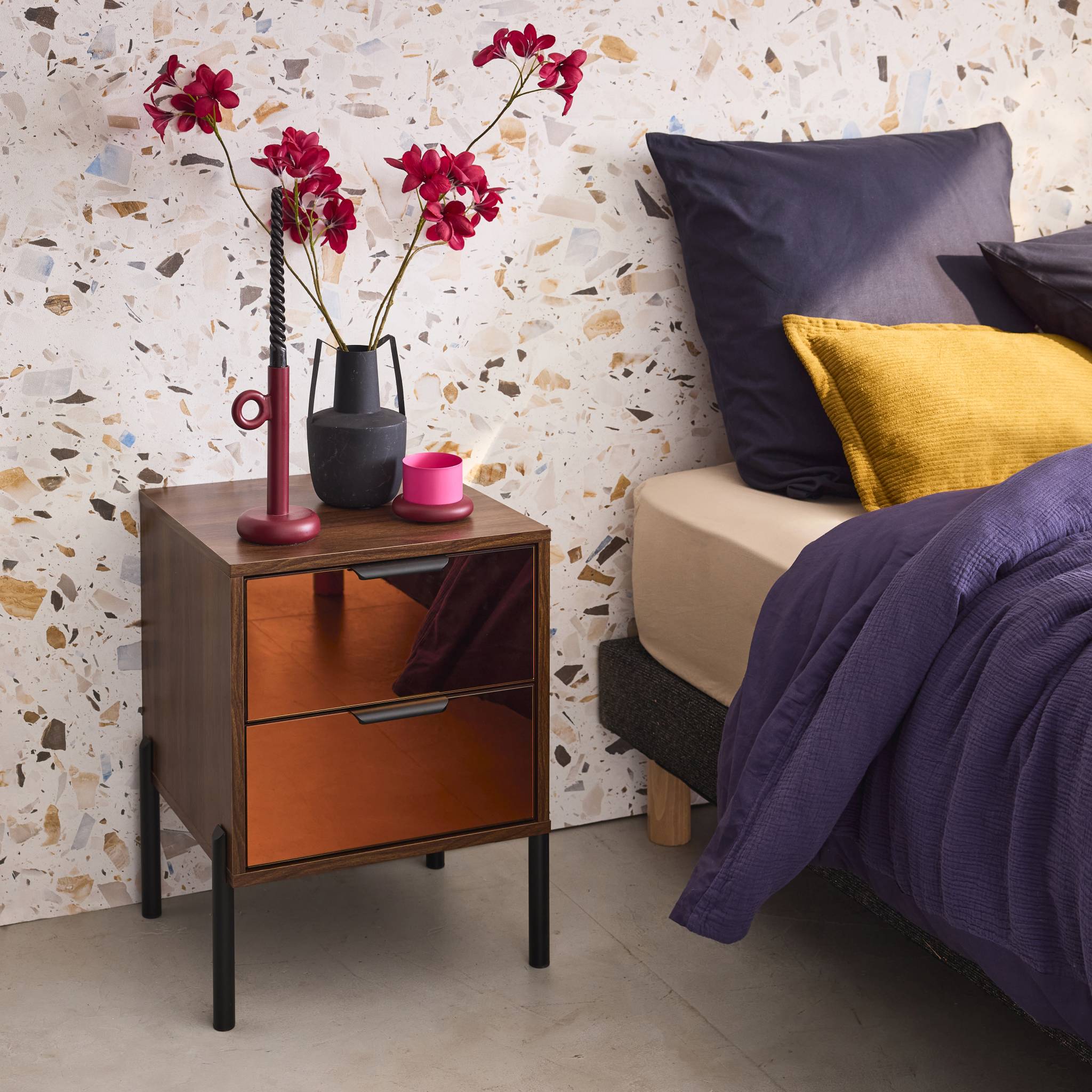 sweeek - Vintage nachtkastje met 2 laden, houteffect en rookkleurig