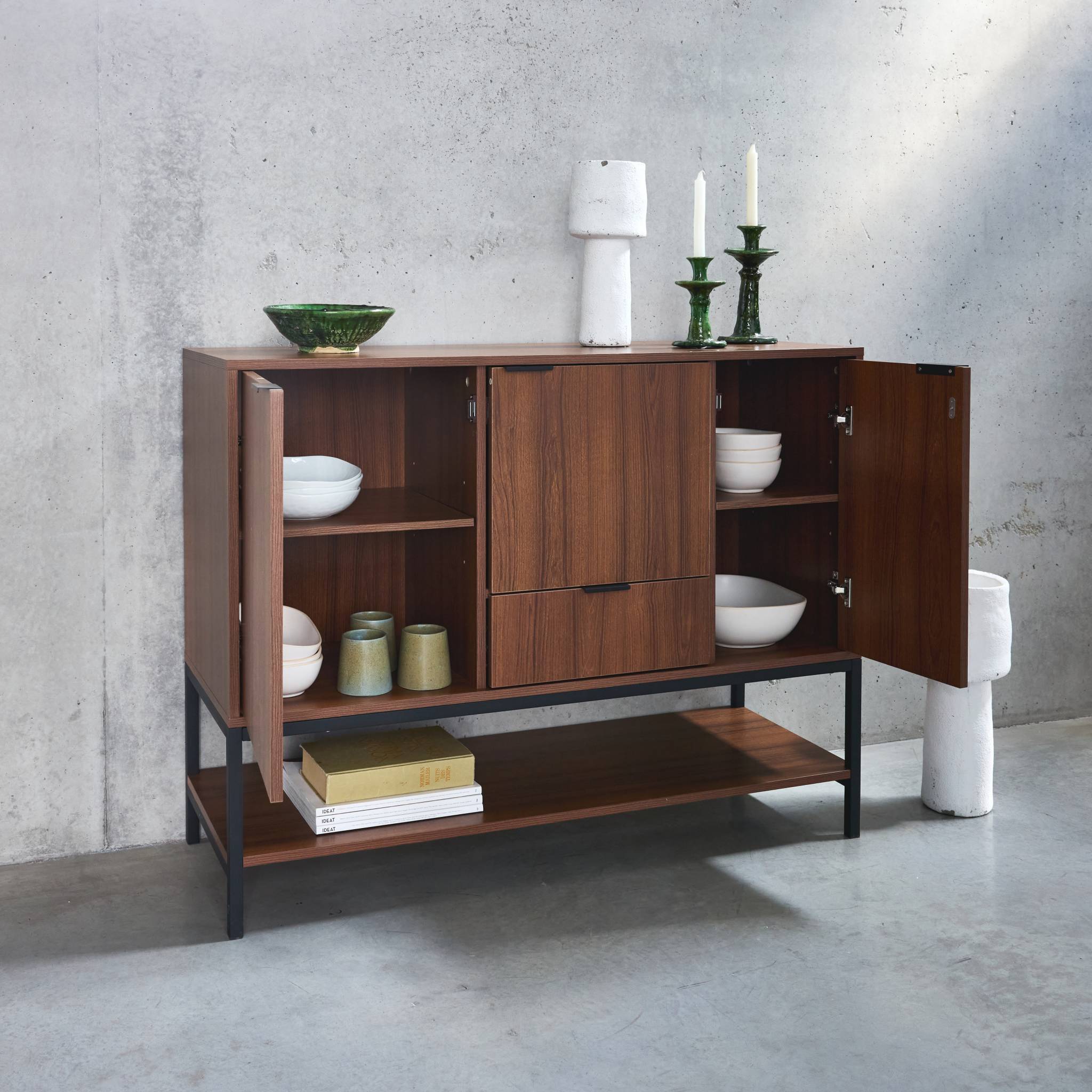 sweeek - Walnootkleurig houten 3-deurs dressoir