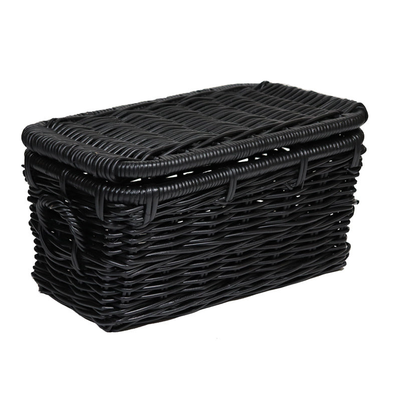 Deze exclusieve rieten manden zijn van de prachtige Sweet Living collectie. De mand is gemaakt van stevig koboo grey riet en heeft een stijlvolle look. De mand is geschikt voor het opbergen van allerlei dingen, maar ook zijn de manden natuurlijk als decoratie ideaal te gebruiken. De mand is voorzien van een zwarte kleur!