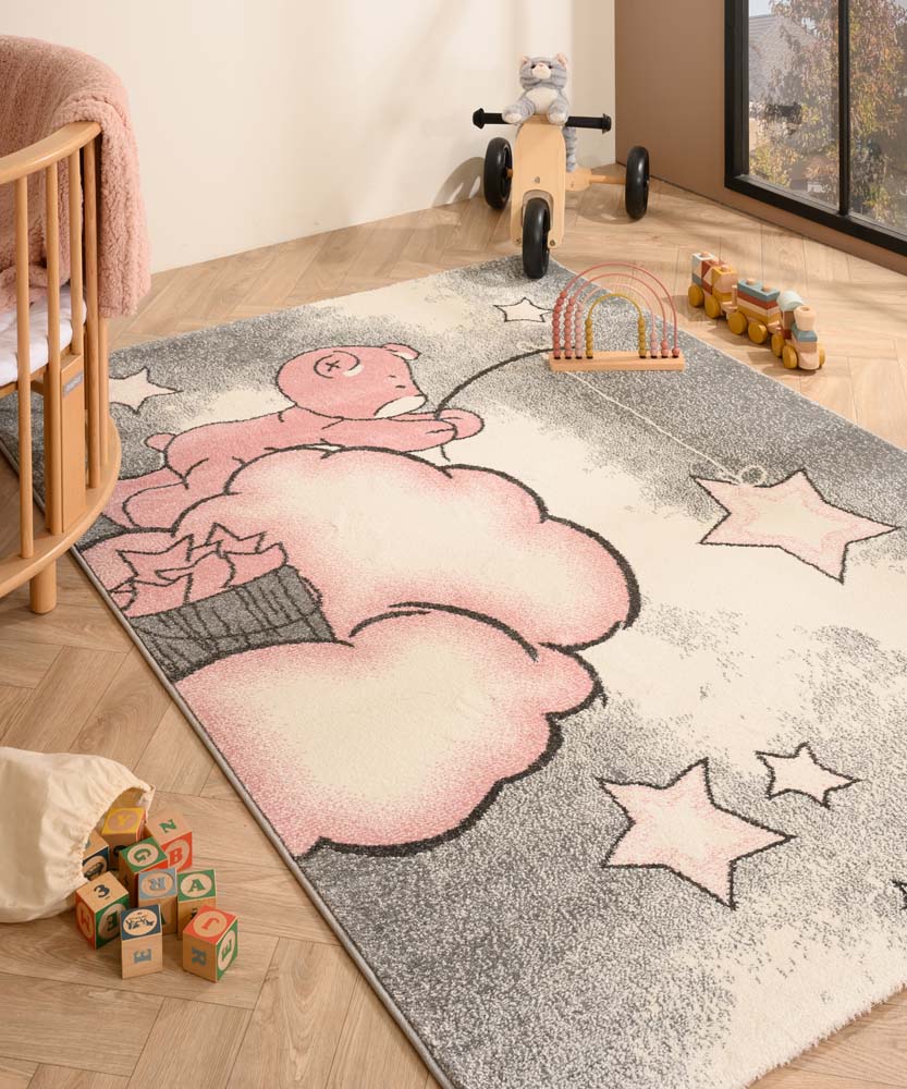 Tapeso Kindervloerkleed - Beer roze - 80x150 cm