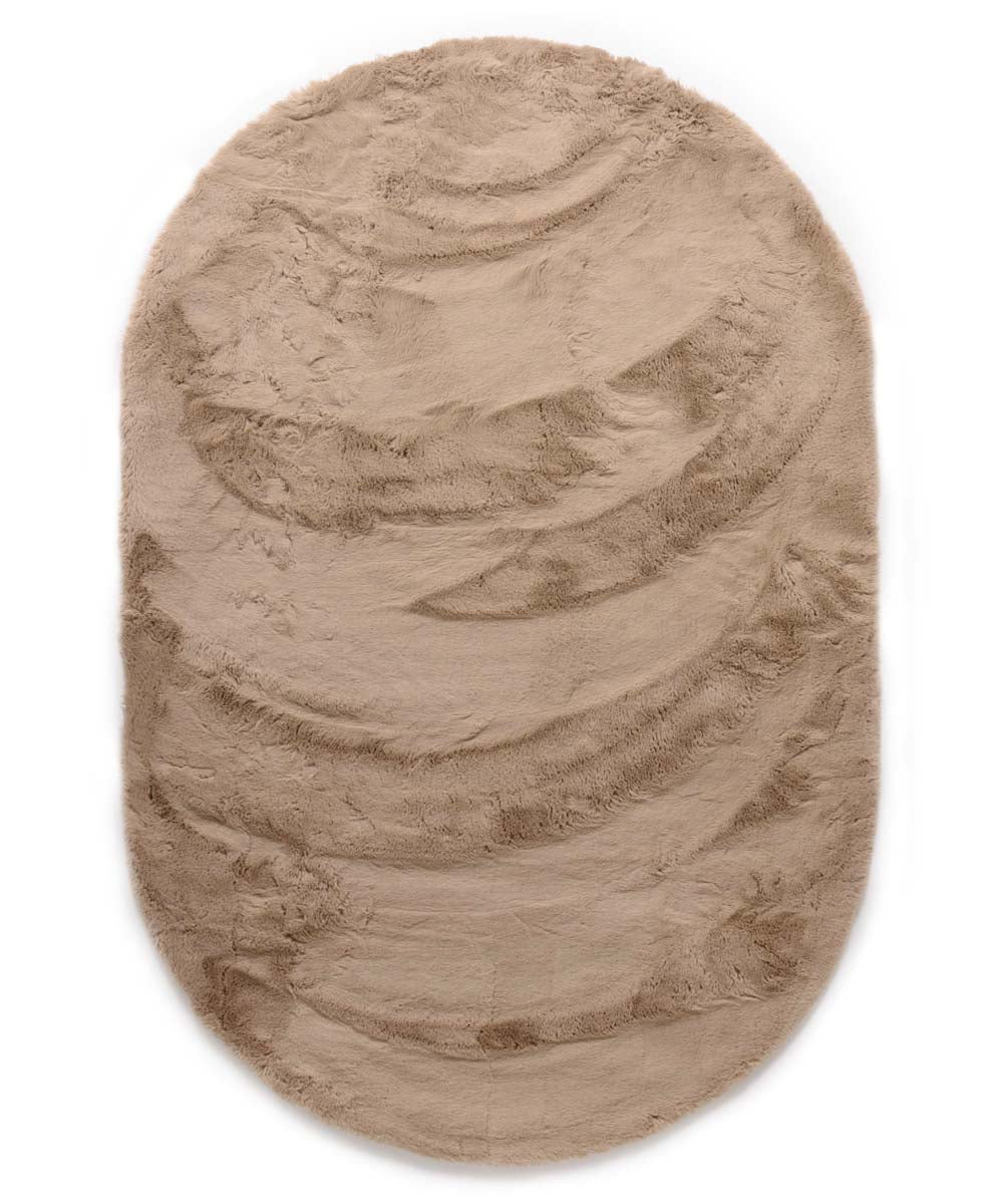 Tapeso Ovaal hoogpolig vloerkleed - Comfy plus - taupe - 120x180 cm
