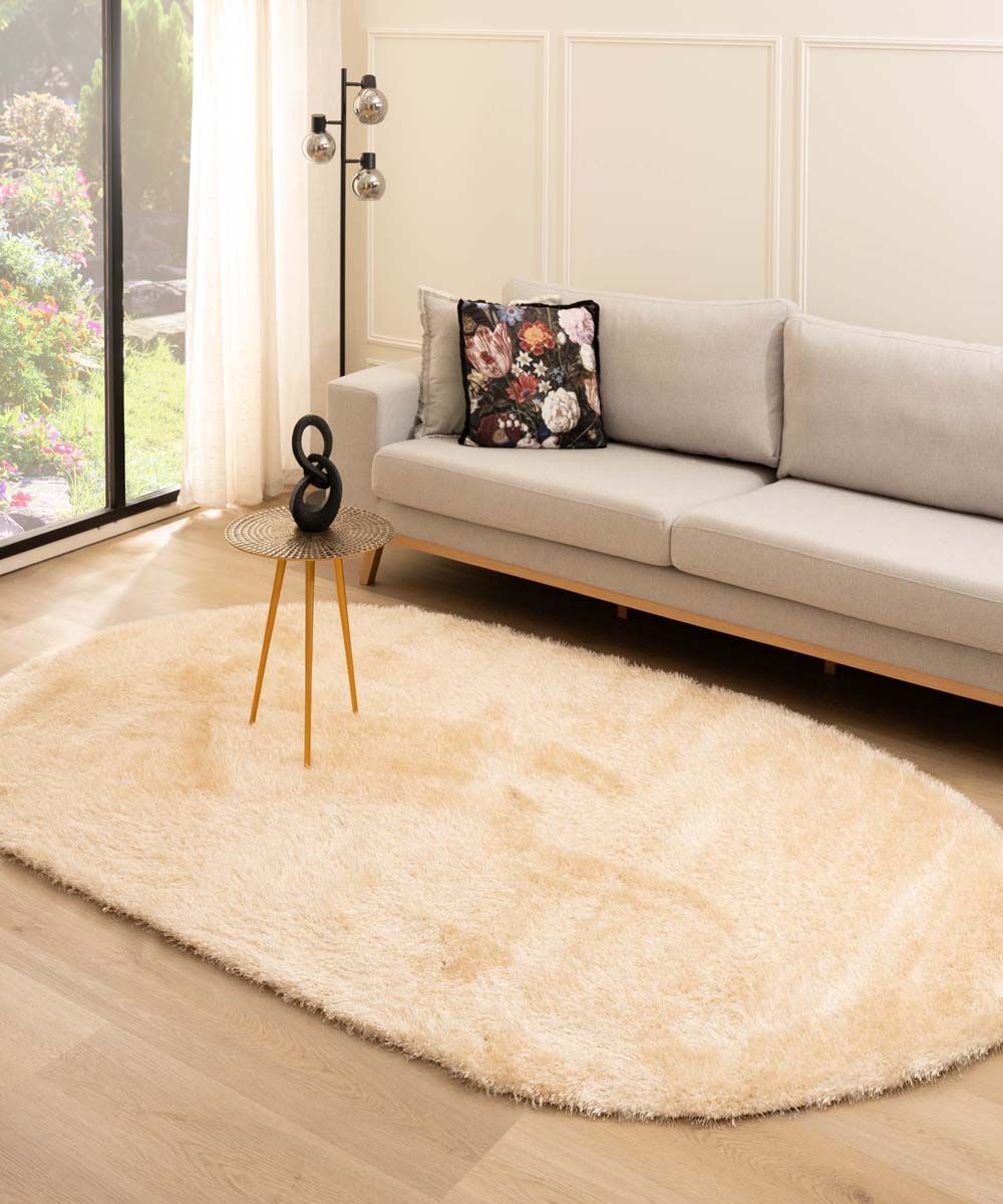 Tapeso Ovaal hoogpolig vloerkleed velvet - Posh champagne - 280x380 cm