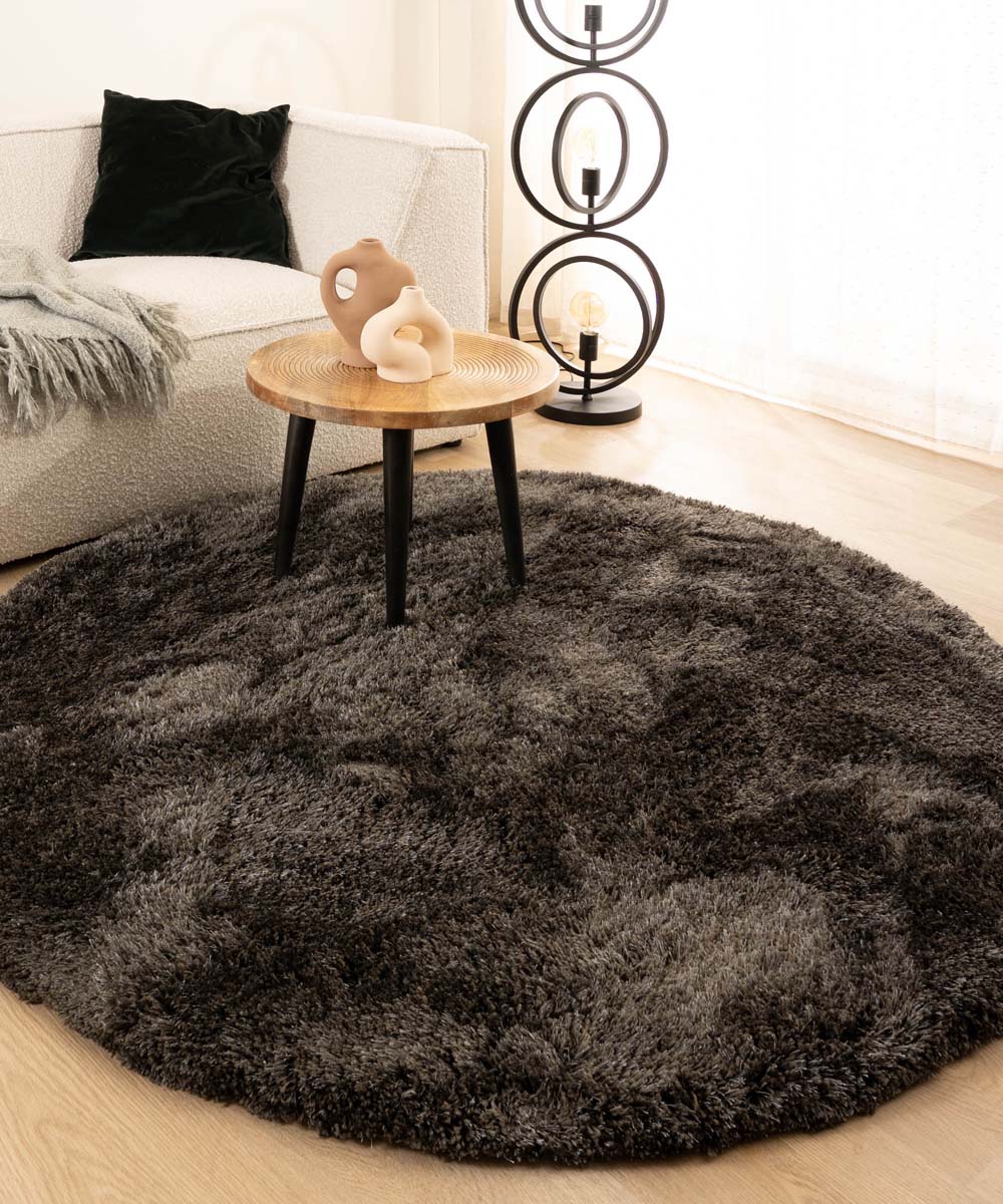 Tapeso Rond shaggy vloerkleed - Meadow antraciet - 250 cm