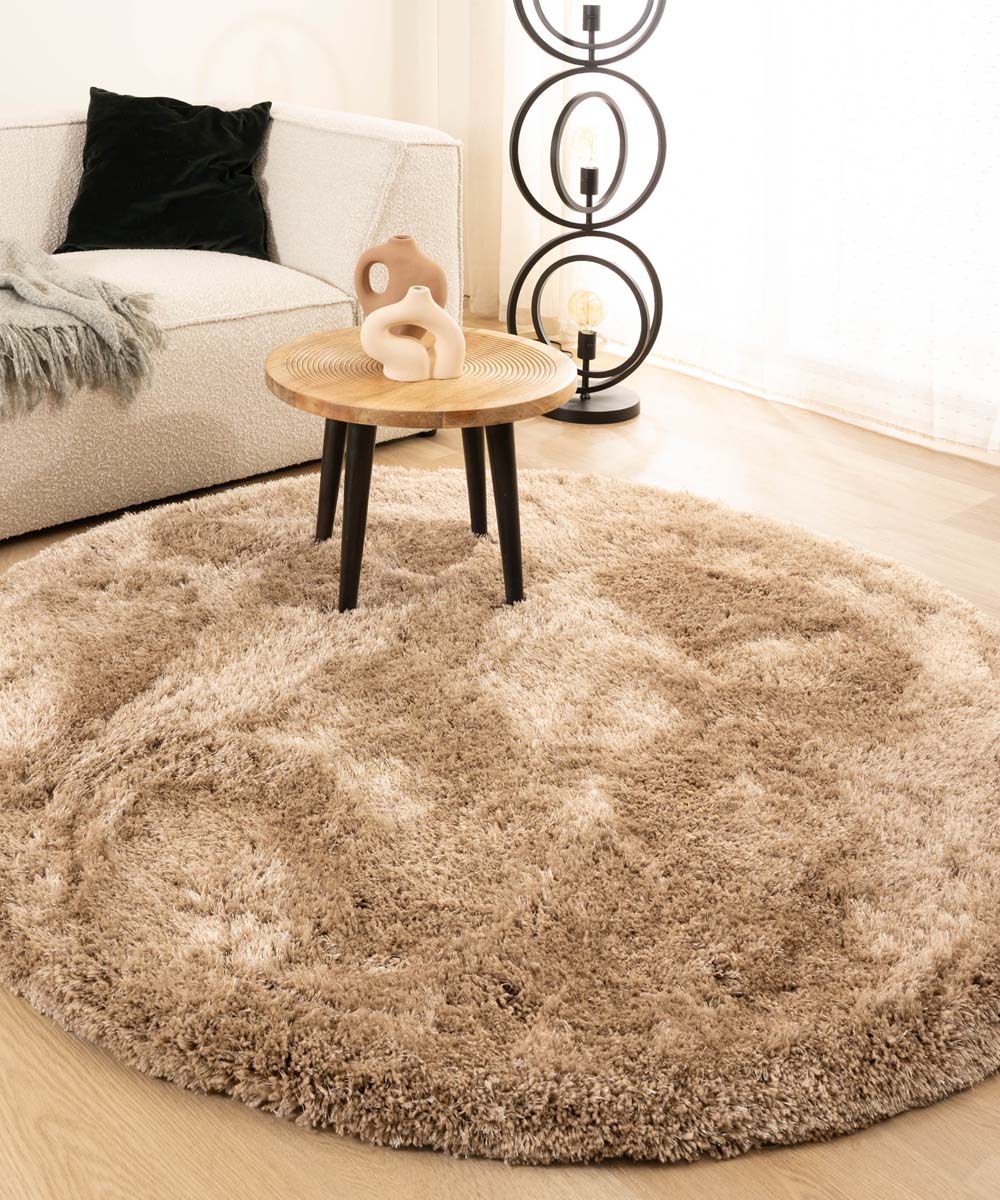 Tapeso Rond shaggy vloerkleed - Meadow beige - 250 cm