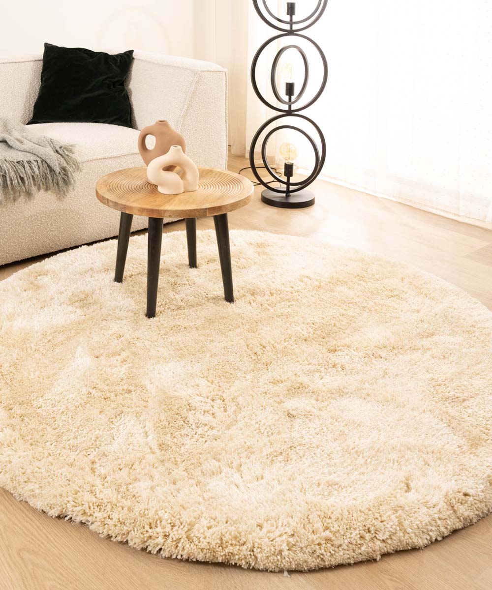Tapeso Rond shaggy vloerkleed - Meadow ivoor - 200 cm