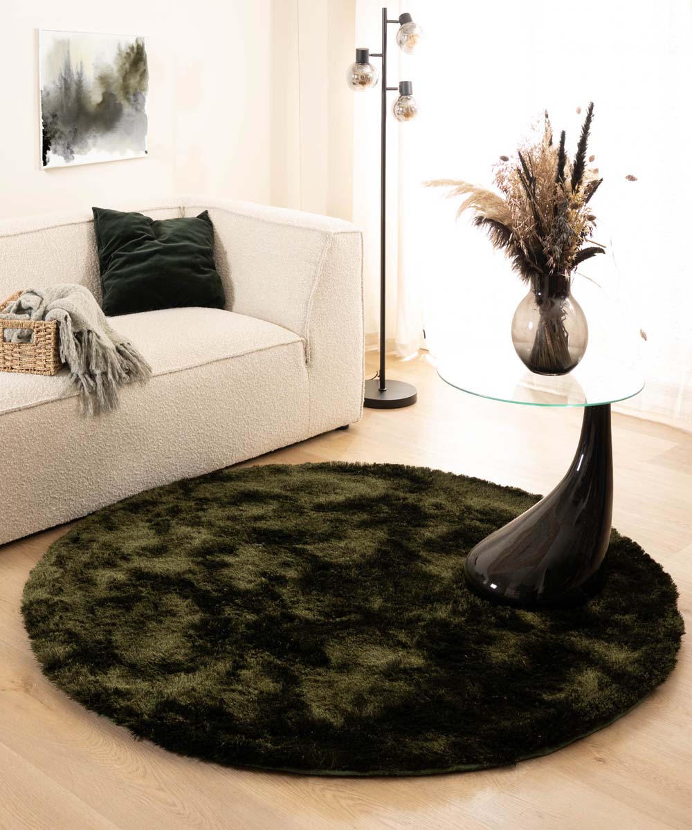 Tapeso Rond shaggy vloerkleed - Spark olijfgroen - 150 cm