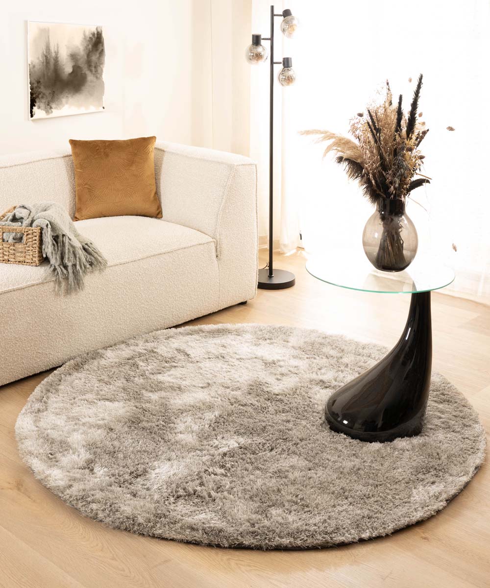 Tapeso Rond shaggy vloerkleed - Spark zilver - 200 cm