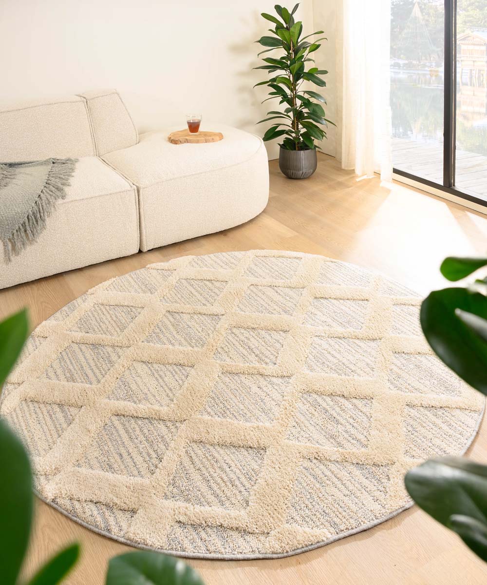 Tapeso Rond vloerkleed Scandinavisch - Fjord Dvale grijs|crème - 200