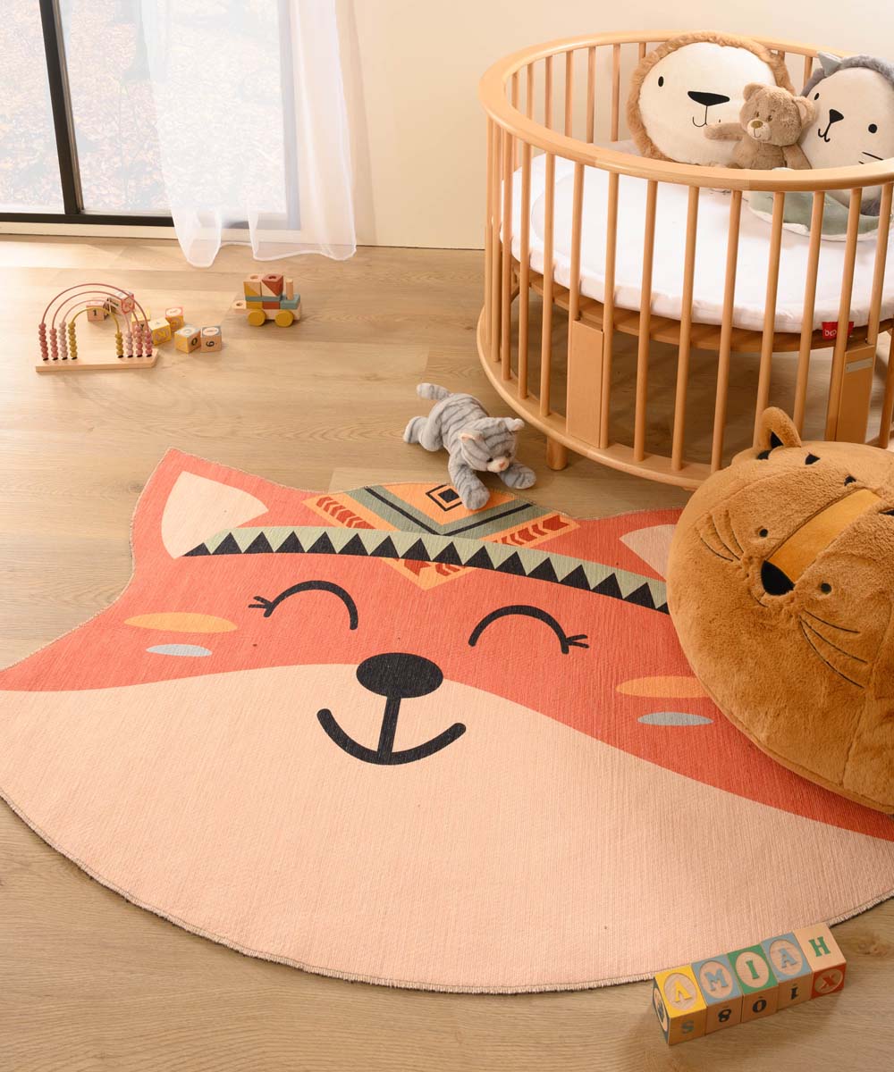 Tapeso Vloerkleed vos kinderkamer - Wasbaar terra - 90x150 cm
