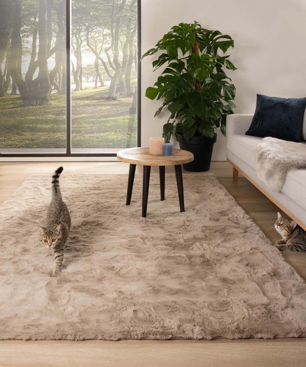 Tapeso Zacht hoogpolig vloerkleed - Comfy plus - taupe - 80x150 cm