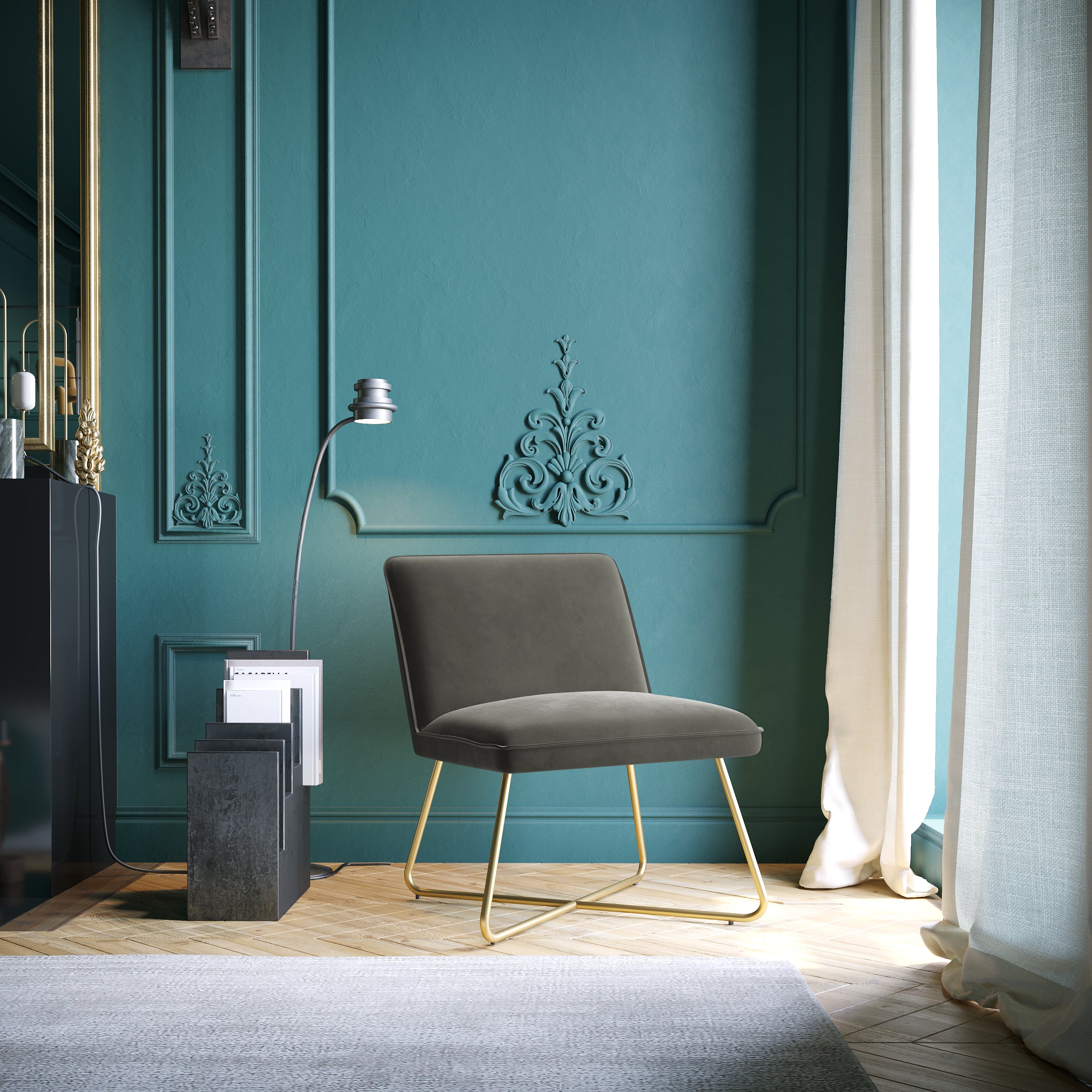 Taupe fluwelen fauteuil
