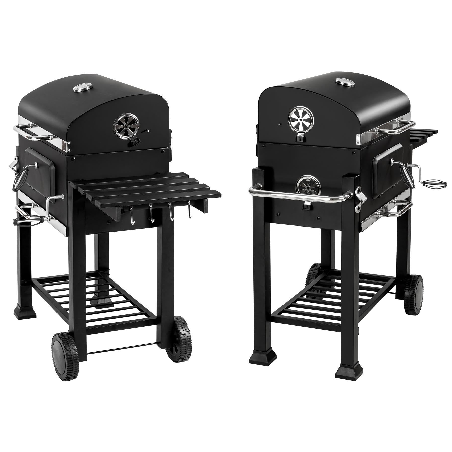 Met 2 Wielen - Regelbare Luchttoevoer En Thermometer - Met Thermometer, In Hoogte Verstelbare Houtskoolbak Met Aslade - Verwarmingsrooster En Opklapbare Zijplank Met 4 Haken, Inclusief Onderste Opbergrek En Flesopener - 115 X 65 X 107 Cm
