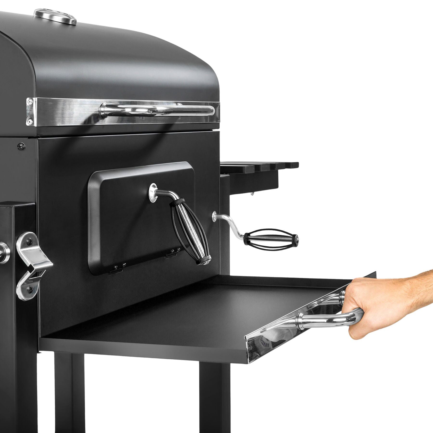 - Variabele barbecuetemperatuur aangezien de houtskoolkuip met een hendel in de hoogte verstelbaar is