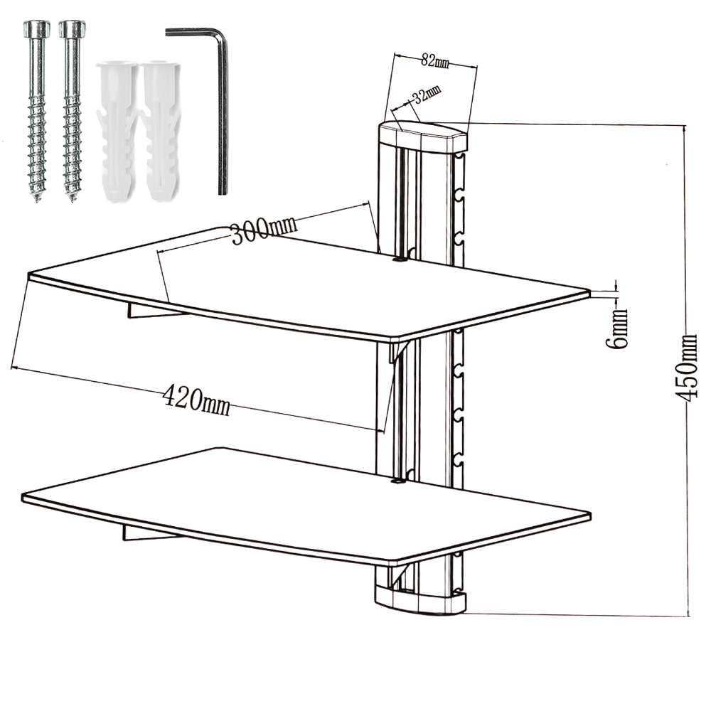 - Top design muurbeugel met twee planken van zwart veiligheidsglas