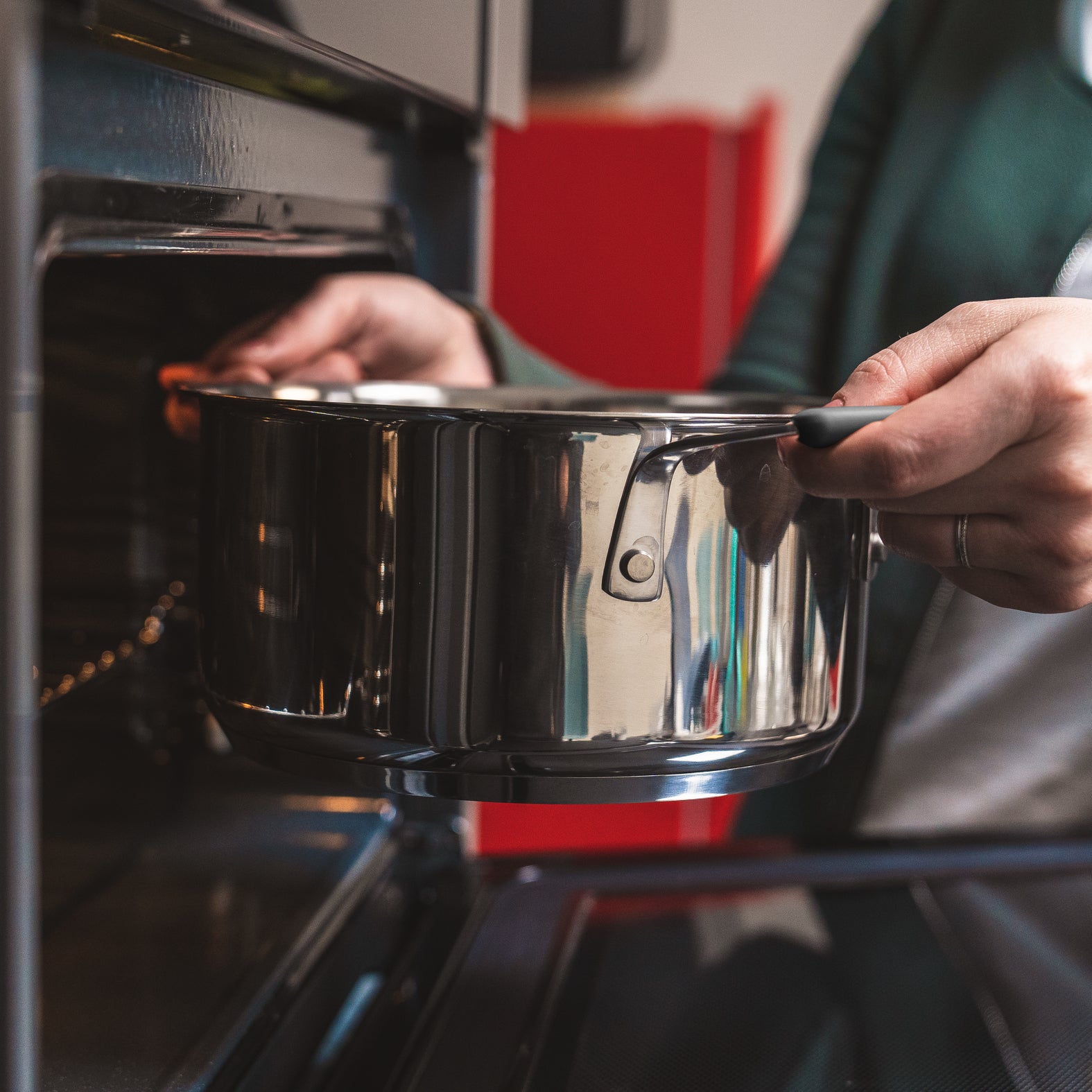 - De pannen zijn gemaakt van stevig RVS en de handgrepen van bakeliet