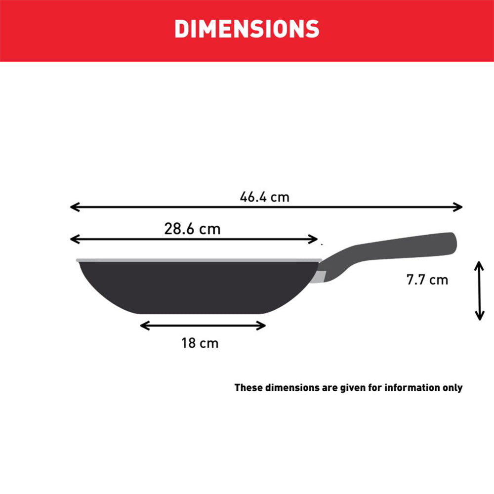 - De wokpan heeft een afmeting van H 10,1 x Ø 28 cm