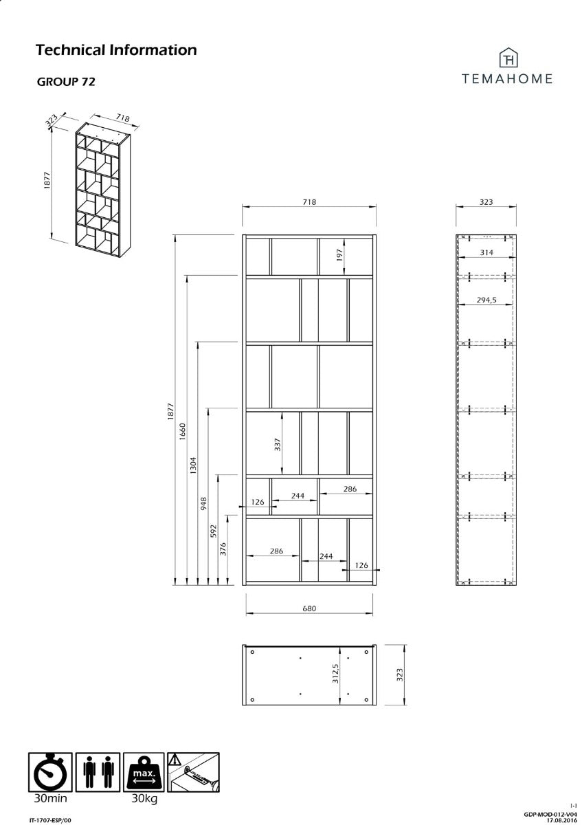 De TemaHome Group boekenkast heeft een breedte van 72 cm en een hoogte van 188 cm Deze is 32 cm diep De Group boekenkast is ook in een grotere variant te verkrijgen, namelijk van 108 cm in lengte