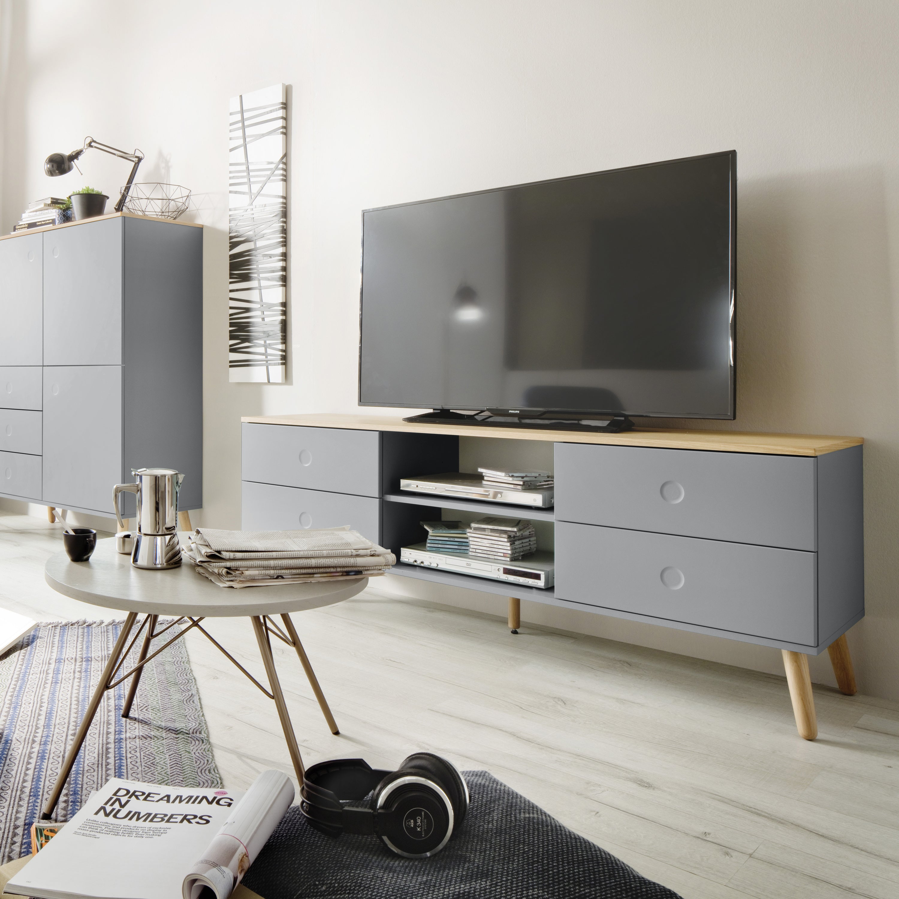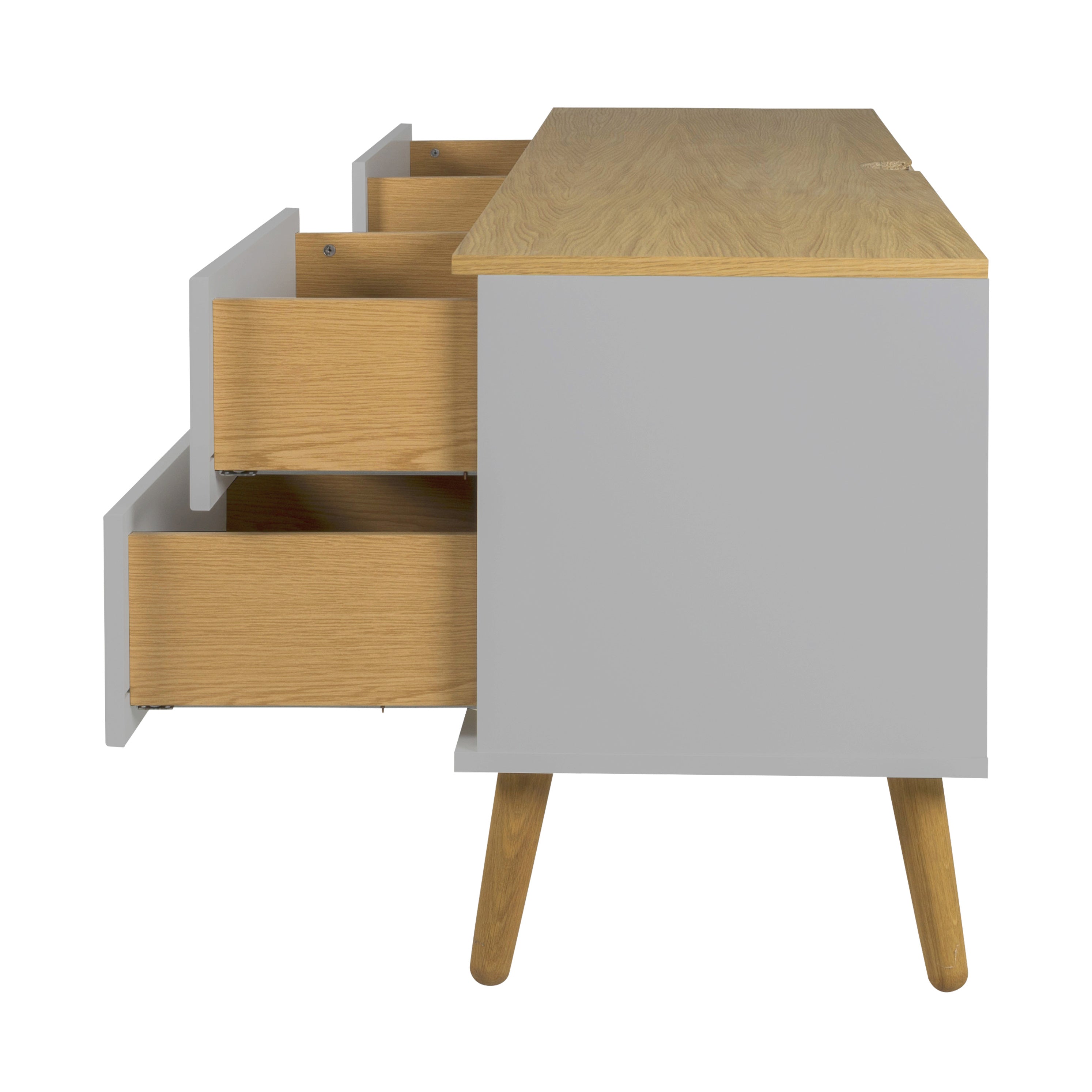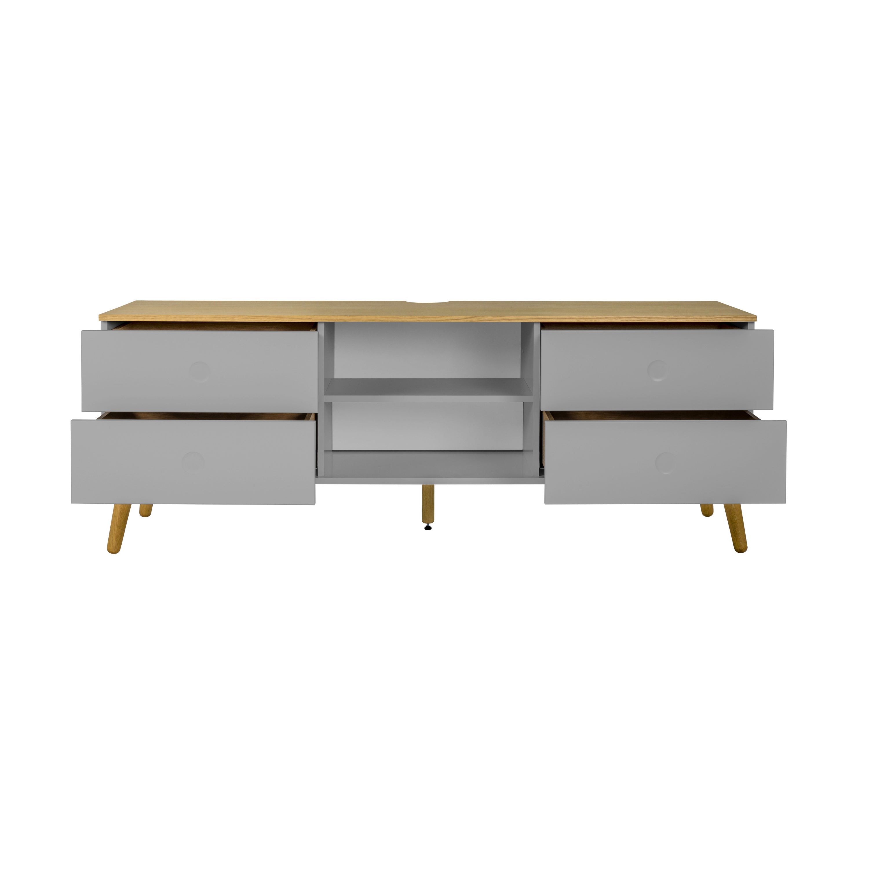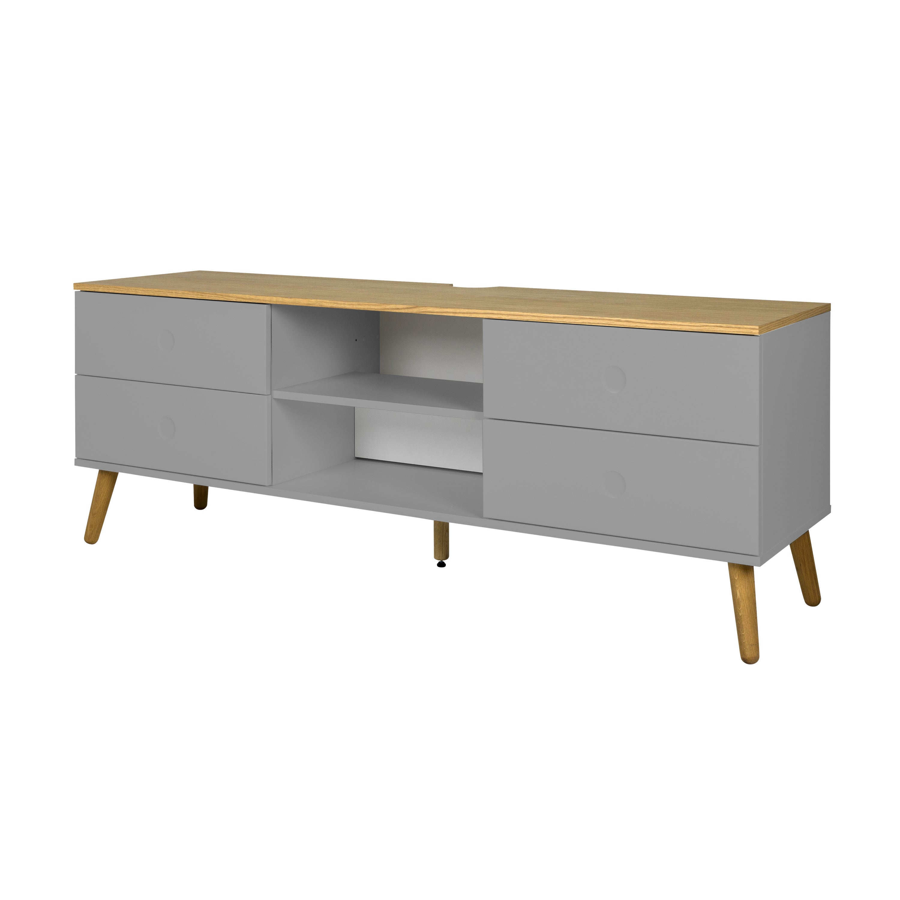 Dit tv-meubel wordt gedemonteerd geleverd, maar is makkelijk te monteren met de meegeleverde handleiding.