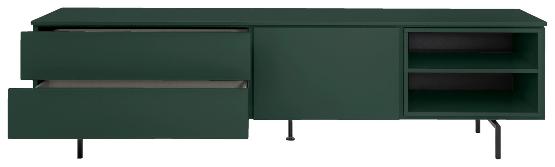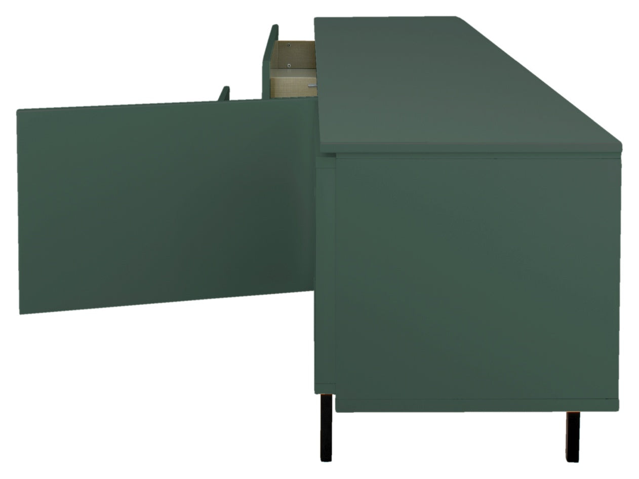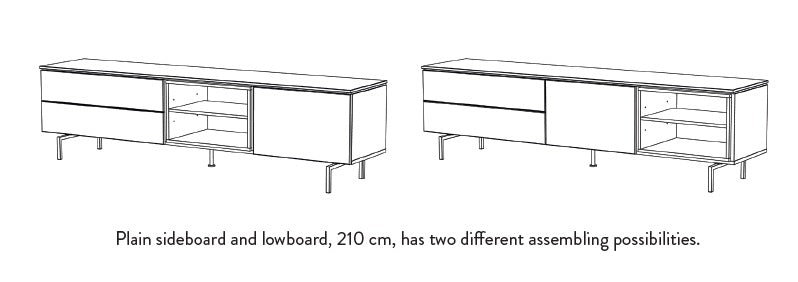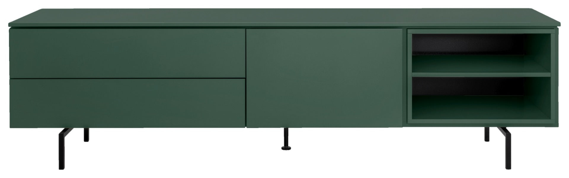 Plain van Tenzo is leverbaar in wit, bosgroen en zwart met metalen poten en in de stijlvolle combinaties wit/walnoot, bosgroen/walnoot en zwart/walnoot met houten poten