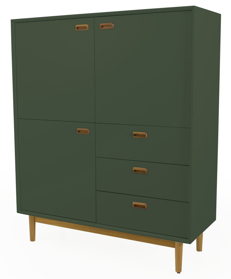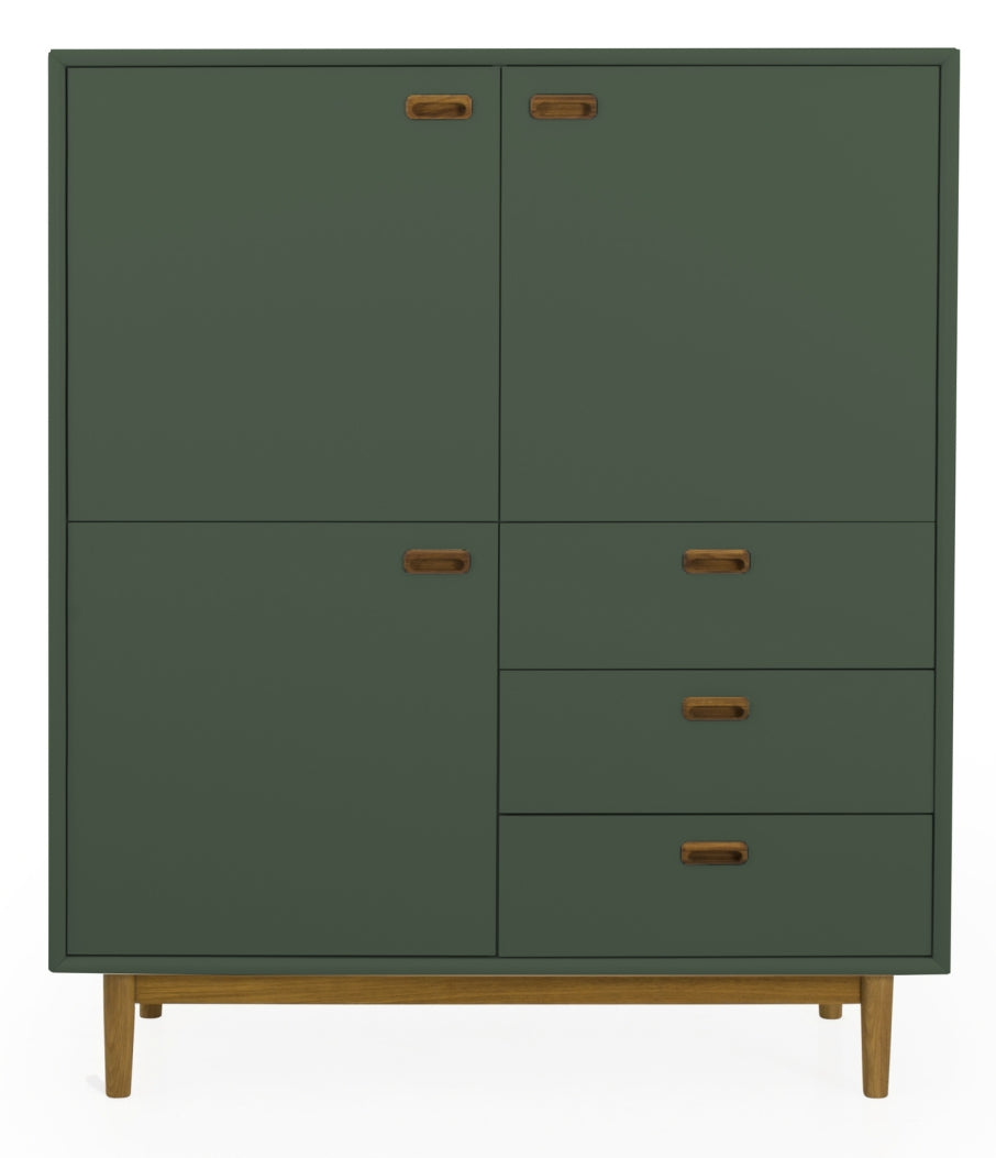 Deze Svea opbergkast met 3 deuren en 3 laden is een modern meubel voor je woonkamer en slaapkamer Het meubel is bosgroen en staat op eiken houten poten
