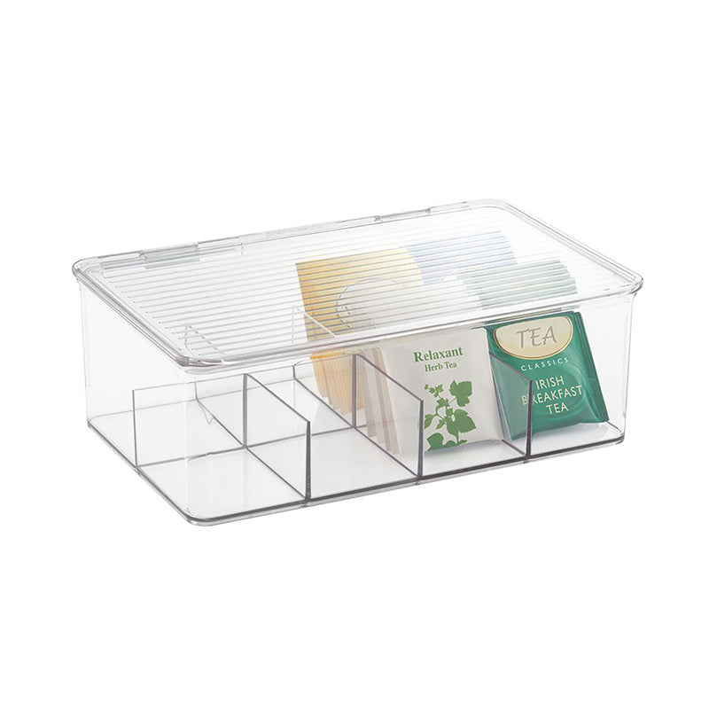 Theedoos, 8 Vakken, 27.3 x 18.4 x 9.5 cm, Kunststof, Transparant – iDesign | Kitchen Binz