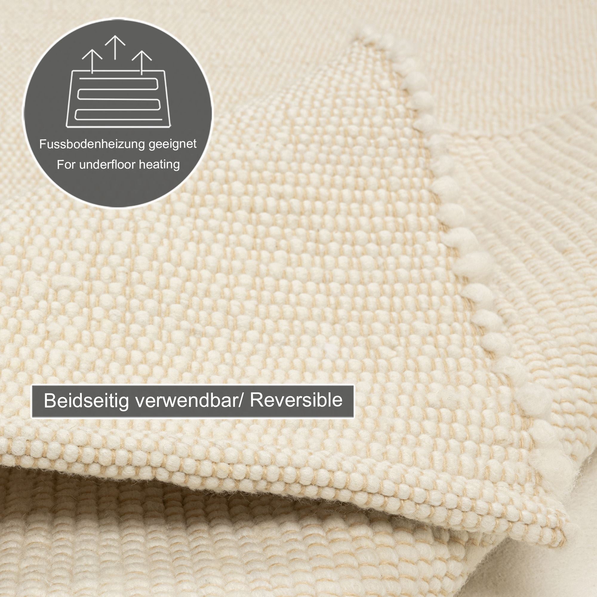 Un tapis naturel, fabriqué en laine vierge de qualité supérieure. Ce tapis tissé main est un tapis naturel de qualité, inspiré des tapis allemands de l'Allgäu. Notre tapis réversible s'adapte à de nombreux styles d'intérieur tels que boho, skandi chic, scandinave, maison de campagne, japandi, industriel, rétro, méditerranéen, maritime et même shabby chic. Les tapis tissés à la main sont très polyvalents et conviennent parfaitement à de nombreuses pièces d'une maison confortable, par exemple comme tapis de salon, tapis de salle à manger, tapis de chambre d'enfant, tapis de chambre à coucher ou comme tapis de couloir / d'entrée.