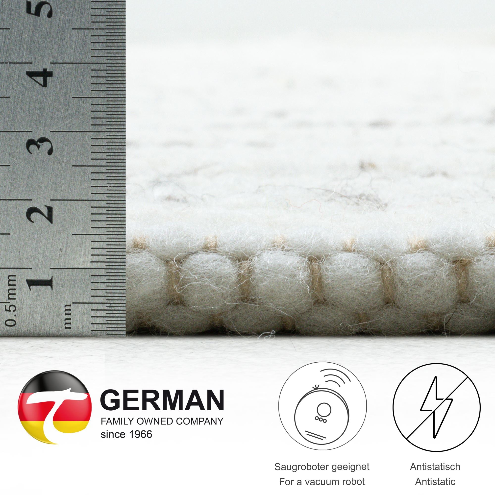 - Qualité de marque THEKO : 100 % pure laine vierge - Hauteur totale : 12 mm - env. 2100 g/m