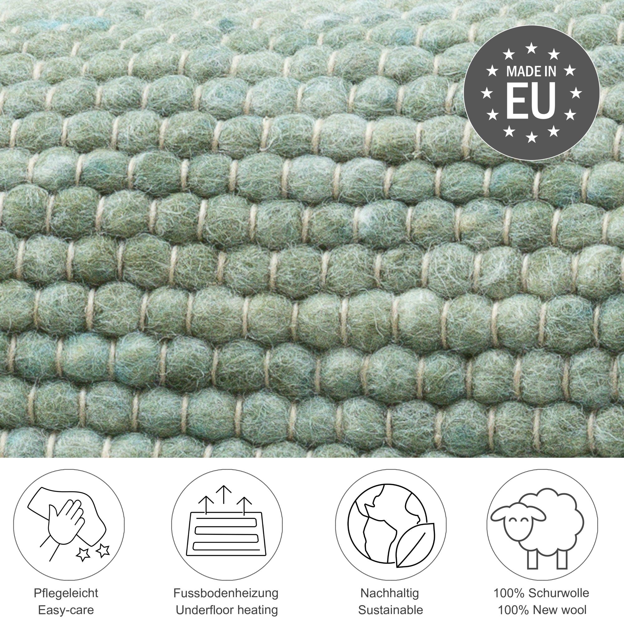 Theko Handgeweven wollen tapijt Alpen 190x250 cm - Groen