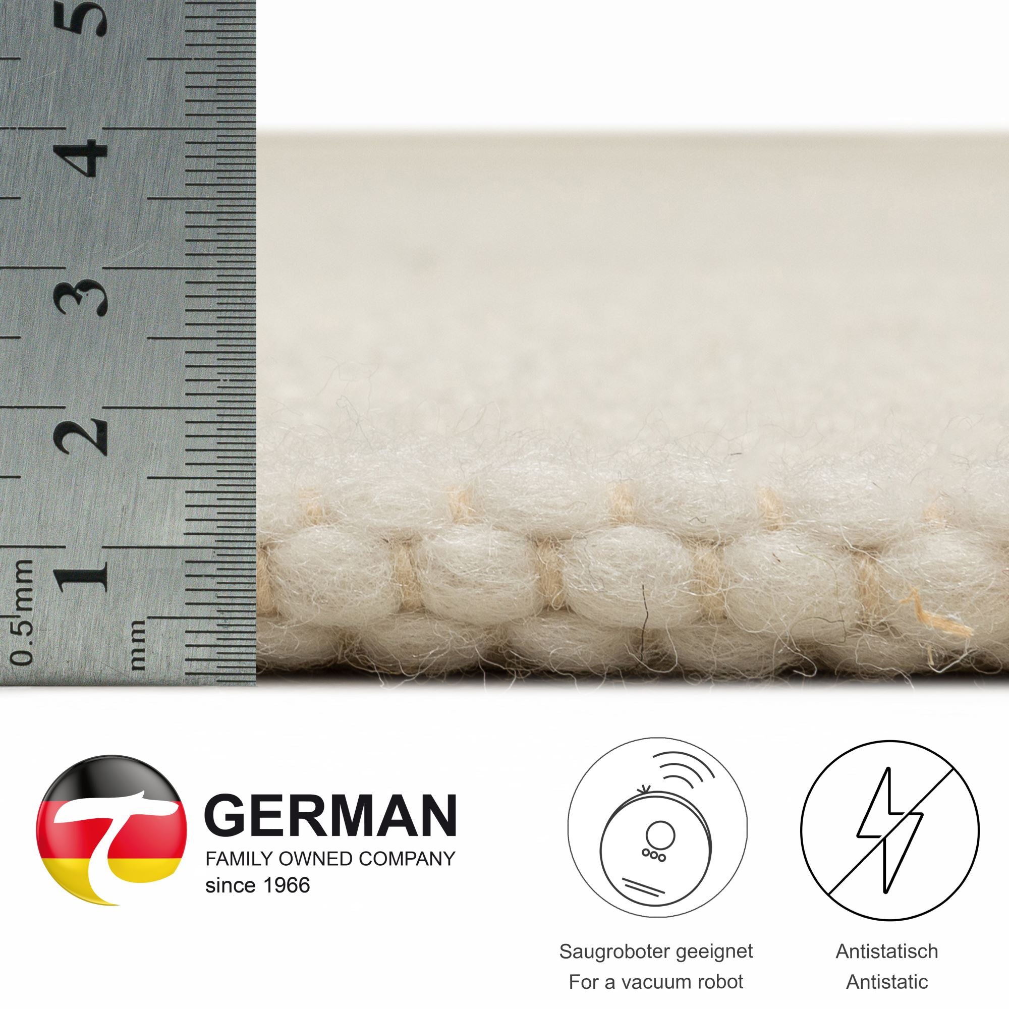 Theko Handgeweven wollen tapijt Alpen 190x250 cm - Natuurwit