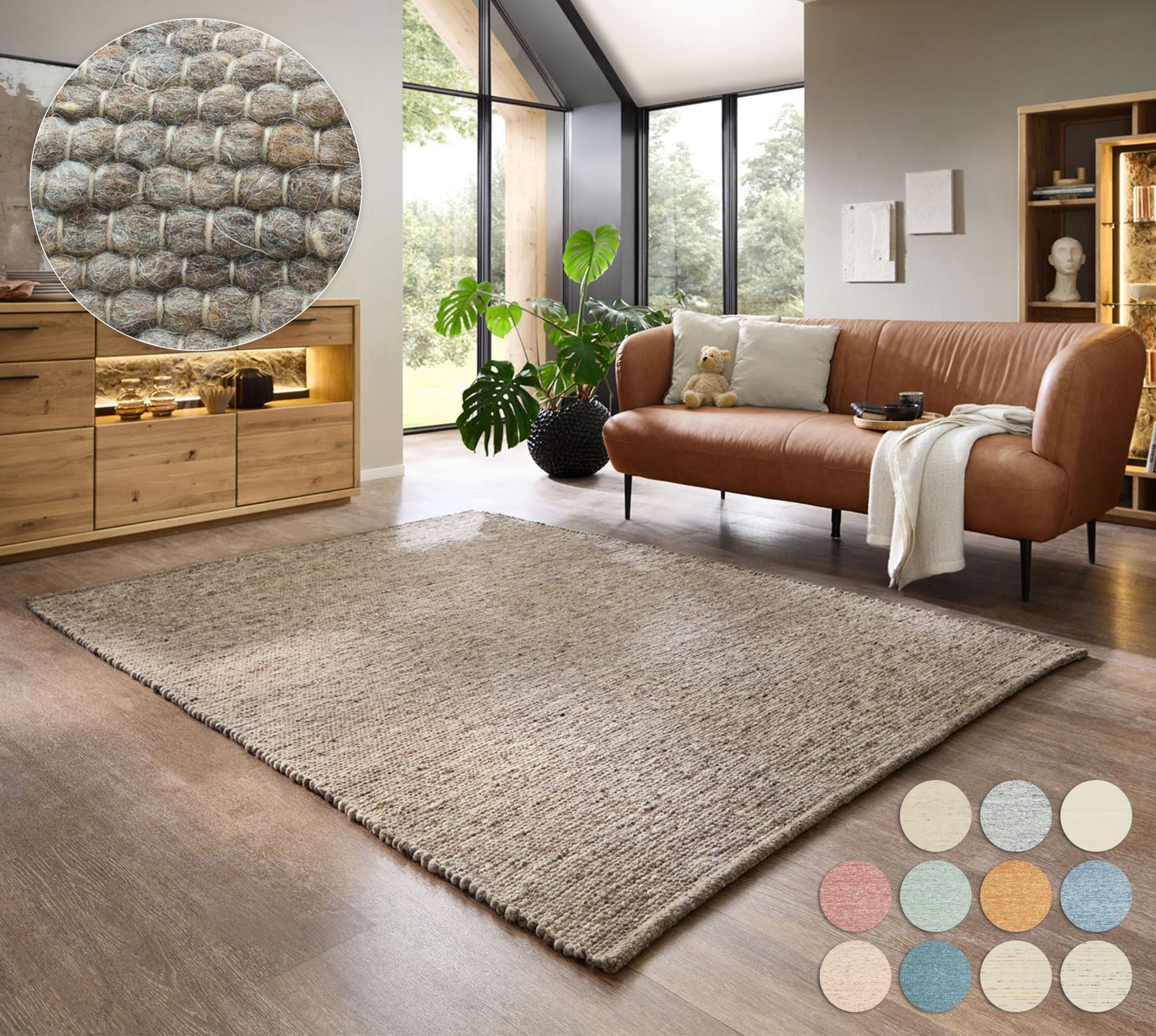 Theko Handgeweven wollen tapijt Alpen 190x290 cm - Bruin