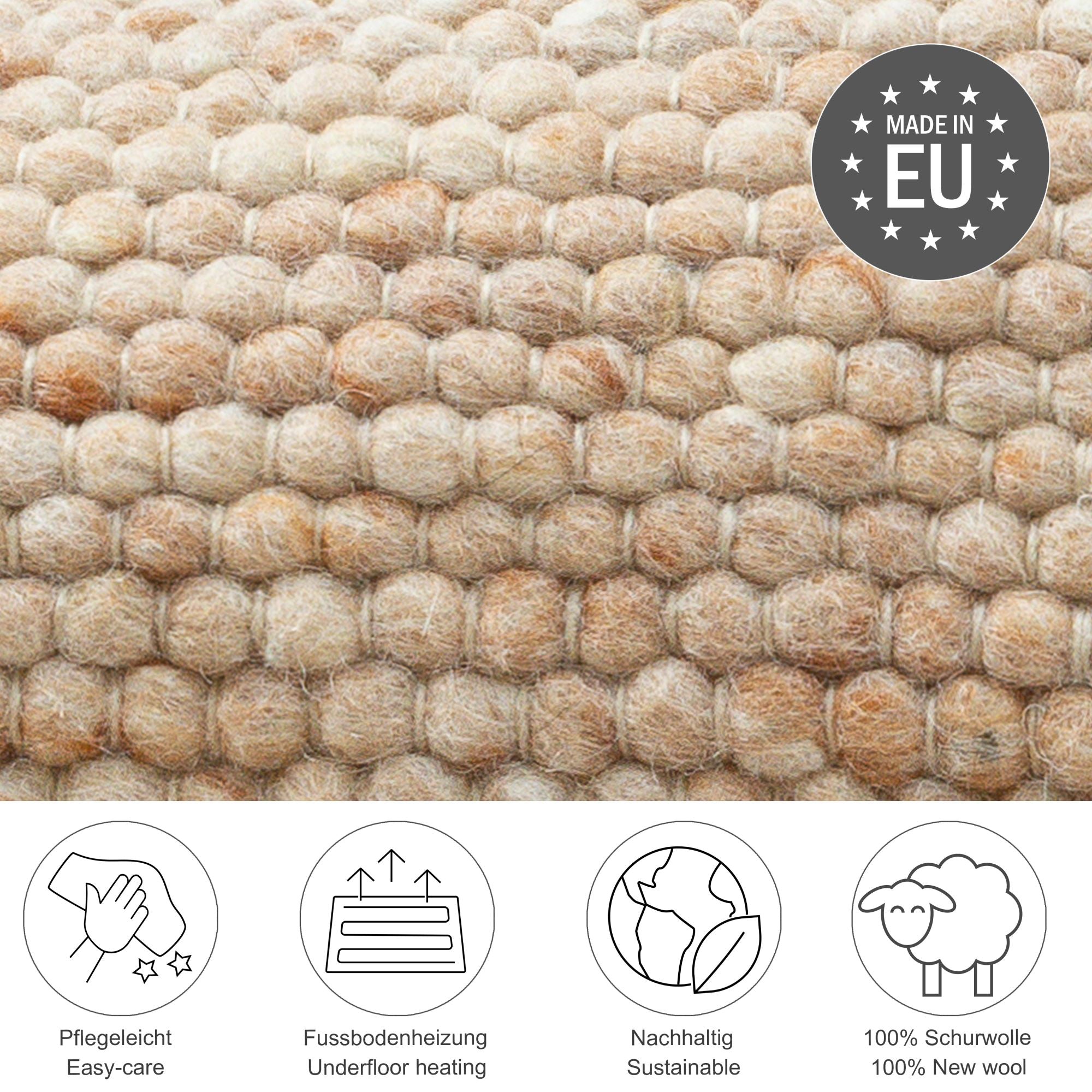 - Qualité de marque THEKO : 100 % pure laine vierge - épaisseur totale : 12 mm - env. 2100 g/m²