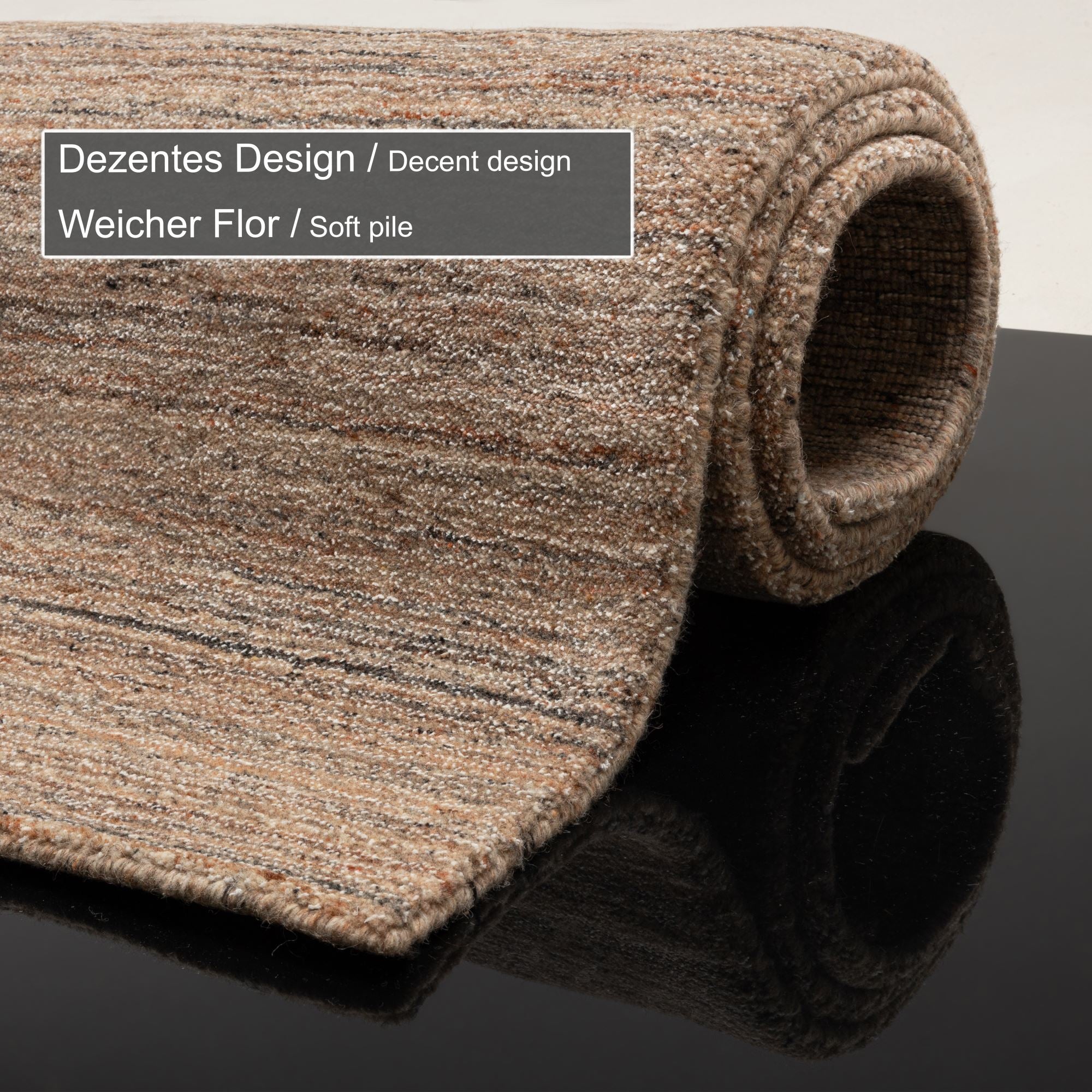 Grâce à son design uni et sobre, le tapis « San Diego » s'intègre dans presque toutes les pièces et confère à chaque espace une atmosphère chaleureuse et accueillante. Que ce soit dans le salon, la chambre à coucher, le couloir ou le bureau à domicile, ce tapis fait partout bonne figure. La laine vierge assure une chaleur naturelle et un climat ambiant agréable, tandis que la viscose apporte de subtils accents brillants et confère au tapis un rayonnement noble.