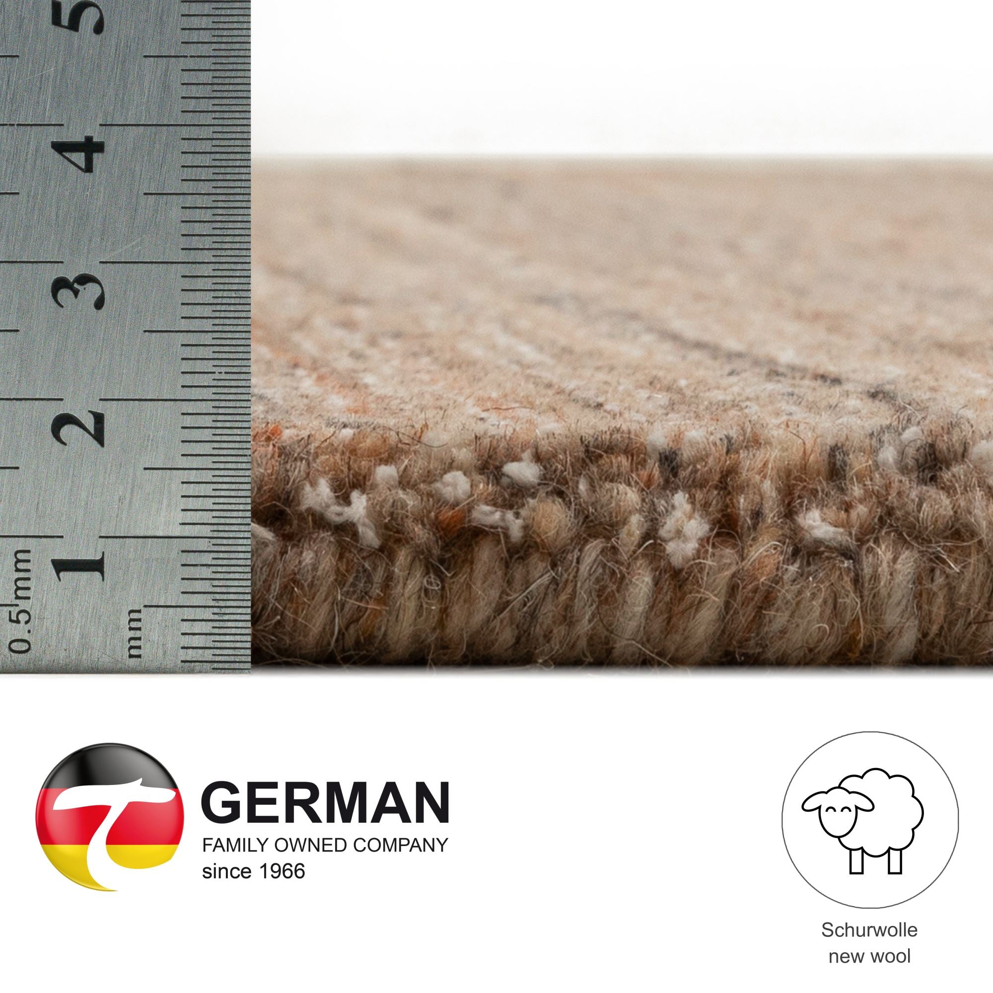 Grâce à son design uni et sobre, le tapis « San Diego » s'intègre dans presque toutes les pièces et confère à chaque espace une atmosphère chaleureuse et accueillante. Que ce soit dans le salon, la chambre à coucher, le couloir ou le bureau à domicile, ce tapis fait partout bonne figure. La laine vierge assure une chaleur naturelle et un climat ambiant agréable, tandis que la viscose apporte de subtils accents brillants et confère au tapis un rayonnement noble.