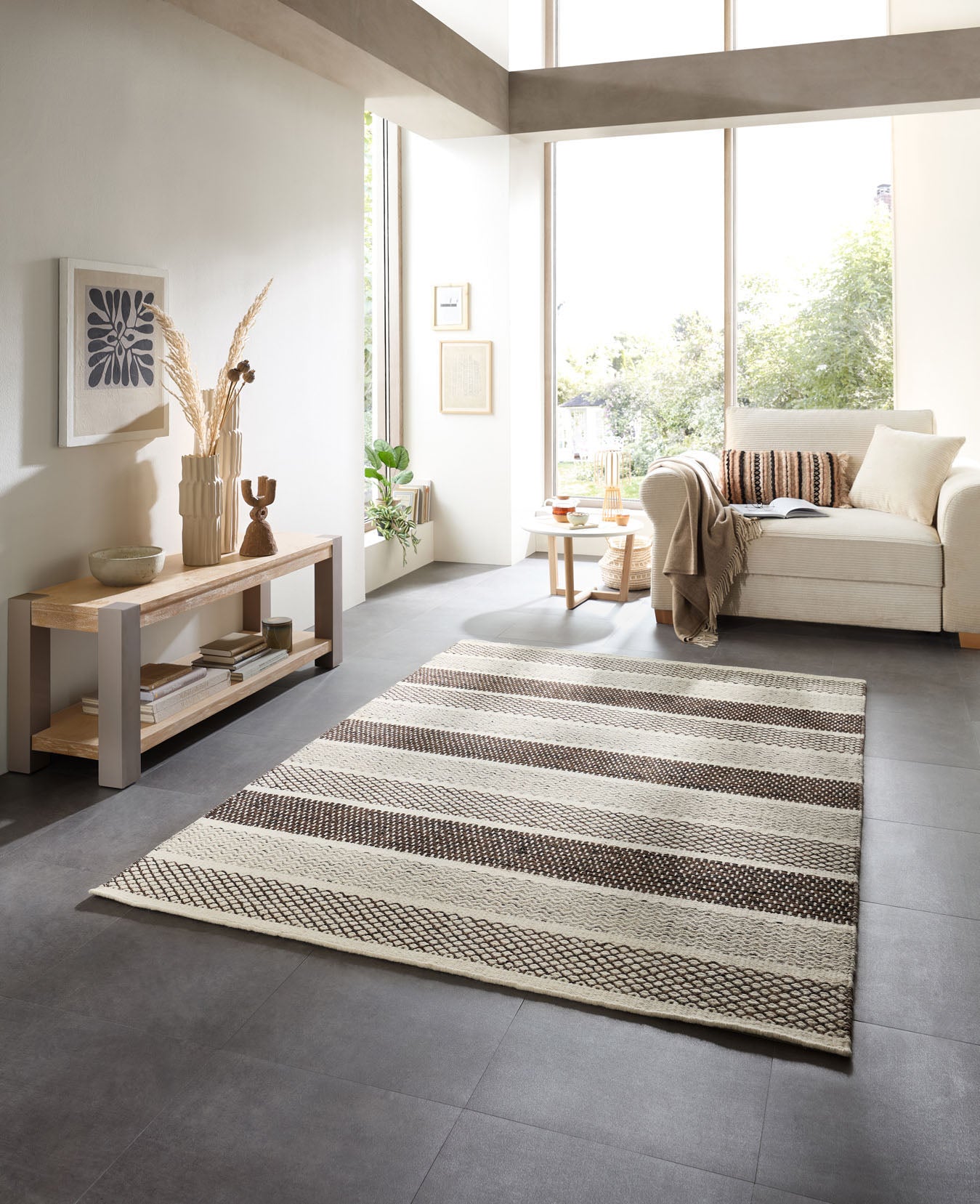 Het Trondheim-tapijt is sober, maar niet eenvoudig. Dit aantrekkelijke tapijt wordt in India geweven uit 100% natuurlijke, ongeverfde wol, dankzij verfijnd handwerk. Met zijn natuurlijke kleuren past het ontwerp van het tapijt, dat een chique Scandinavische look uitstraalt, discreet in elk interieur.