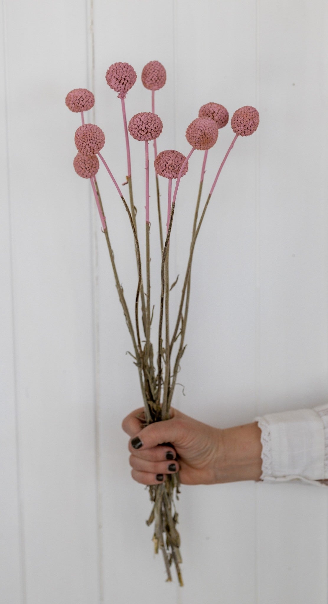 Craspedia; het leuke bolletjes op een stokje nu verkrijgbaar in de kleur roze.