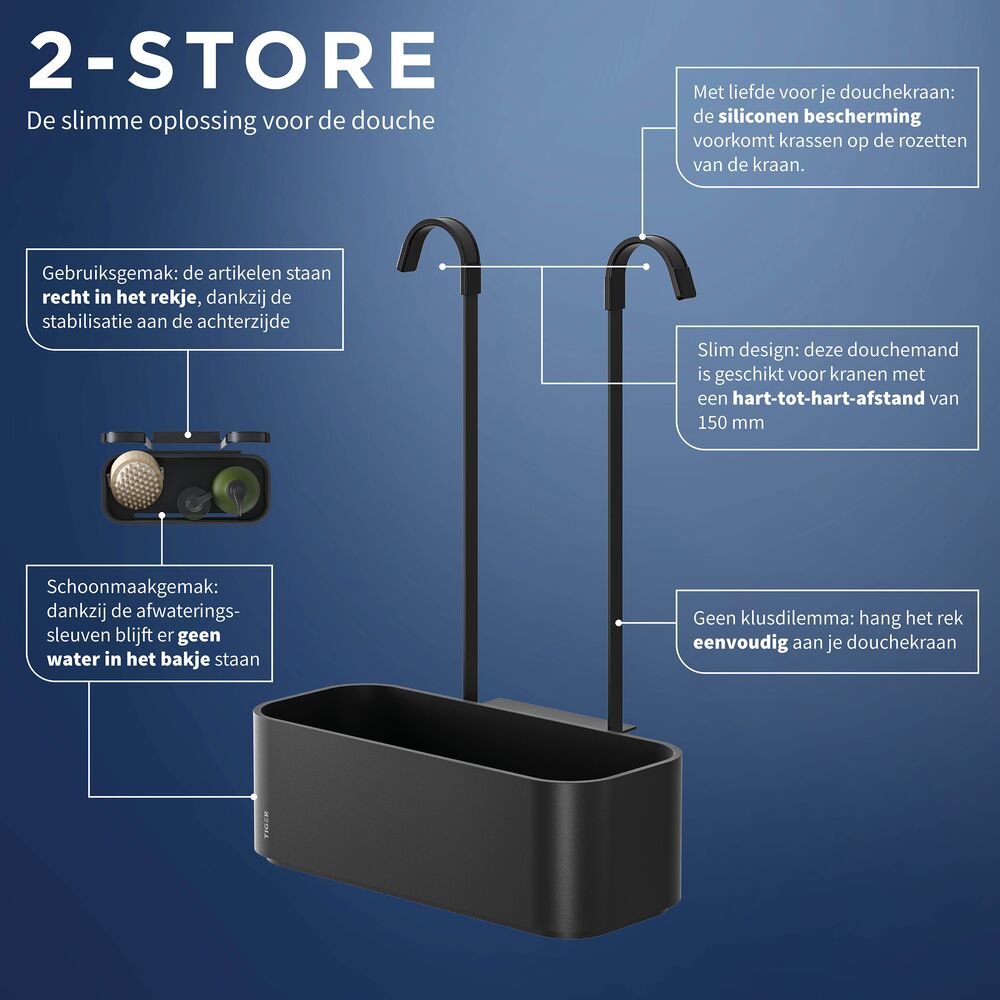 Het Tiger 2-store doucherek biedt op een stijlvolle manier veel ruimte voor al je douchespullen. Het rek bestaat uit een opbergmandje die je eenvoudig in de douche hangt. Opgeruimd staat netjes!