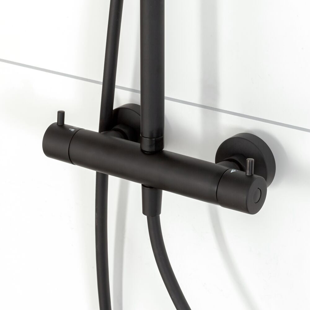 Waterbesparend Meer waterverbruik door grote douchekop: bij een waterdruk van 3 bar verbruikt deze set gemiddeld 20 liter per minuut. De thermostatische kraan zorgt ervoor dat het water meteen op temperatuur is