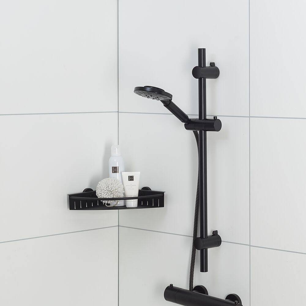 De tijd dat je alleen maar uit chroom of RVS kunt kiezen als kleur voor in je badkamer is voorbij! Met deze zwarte doucheset van Tiger maak jij je badkamer helemaal naar je eigen stijl. Geef je badkamer een industriële look of als stijlvolle aanvulling met een doucheset bij het bad. Deze doucheset uitgevoerd in mat zwart en bevat een handdouche, doucheslang en douchestang. De ronde handdouche heeft 3 verschillende waterstralen waardoor je kunt kiezen voor een heerlijke massage of je haar perfect kunt uitspoelen. De douchekop is waterbesparend te maken door de bijgeleverde waterregelaar die tot 40% water bespaart. Met oog voor detail en design is de omstelknop aan de achterzijde geïntegreerd. De doucheslang is voorzien van anti-twist en voorkomt draaien. De douchestang is makkelijk verstelbaar met één hand, geen gestuntel maar in een handomdraai de perfecte waterstraal. Super handig als je met meerdere personen gebruik maakt van de douche om in hoogte te verstellen en te draaien.Door speciale technologie voor het aanbrengen van de zwarte kleur zorgt Tiger ervoor dat de zwarte kleur tien keer meer krasbestendig is en beschermd tegen roesten. Ontkalken gaat gemakkelijk door de anti-kalk nozzles. Het advies is om de doucheset na gebruik even af te drogen met een droge doek. Zo zorg je voor een jarenlang plezier van de kleur!